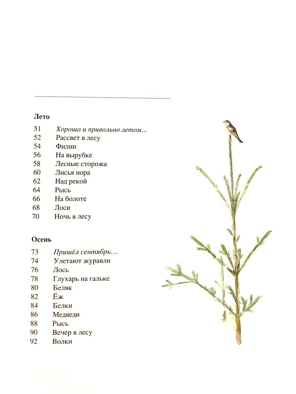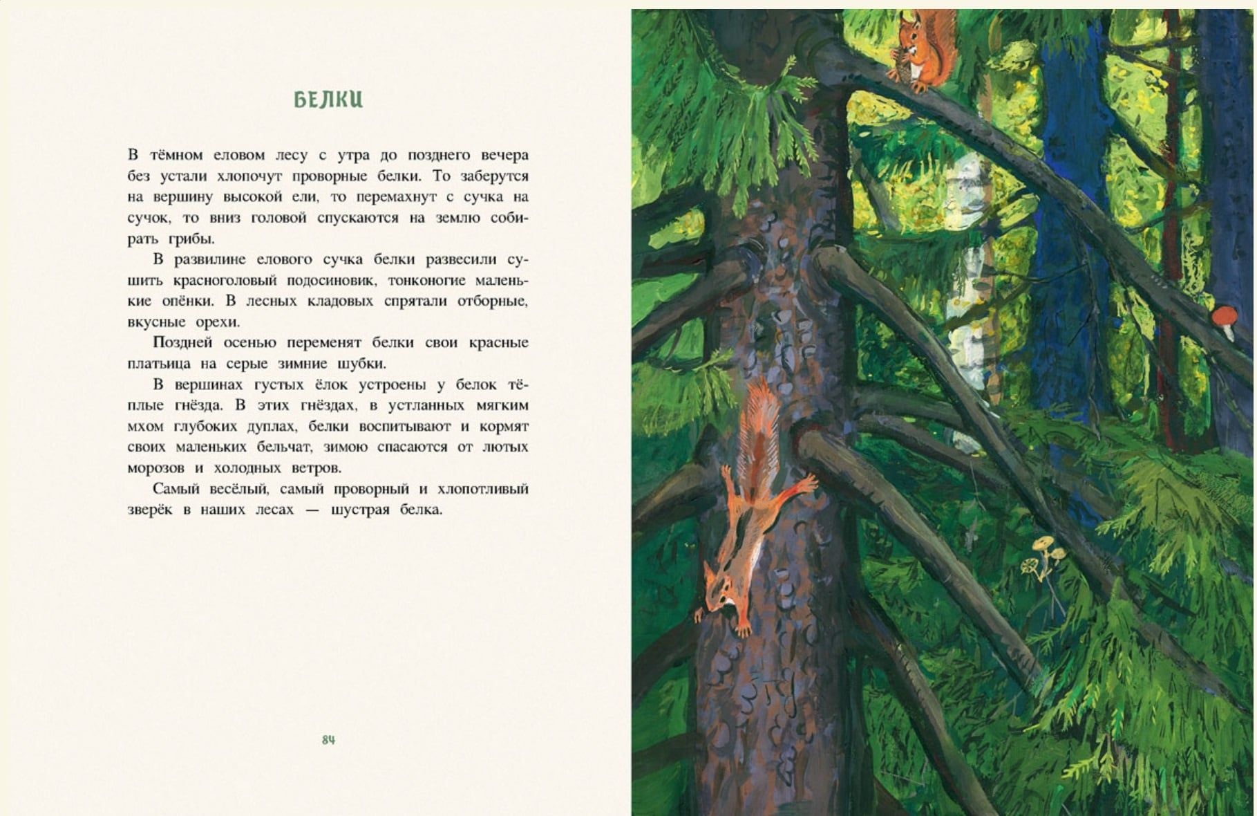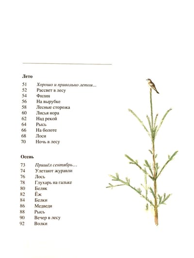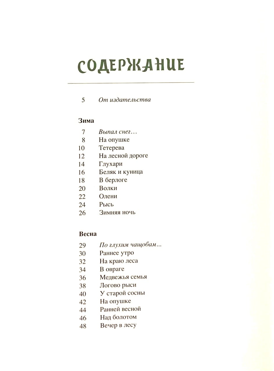 No one will be indifferent to the humble Russian forest. Even on the frostiest winter days, life does not stop here: grouse burrow into the snow, packs of wolves roam along the snow-covered paths... The forest is joyful and noisy in spring and summer: birds whistle with each other, animals prowl under the trees... Autumn comes, and forest dwellers begin to prepare for winter. Birds are flying south, lizards and urchins are hiding, bears are organizing their dens and squirrels their larders. Sketches of life in the Russian forest were shared with readers by writer I. Sokolov-Mikitov and artist G. Nikolsky.