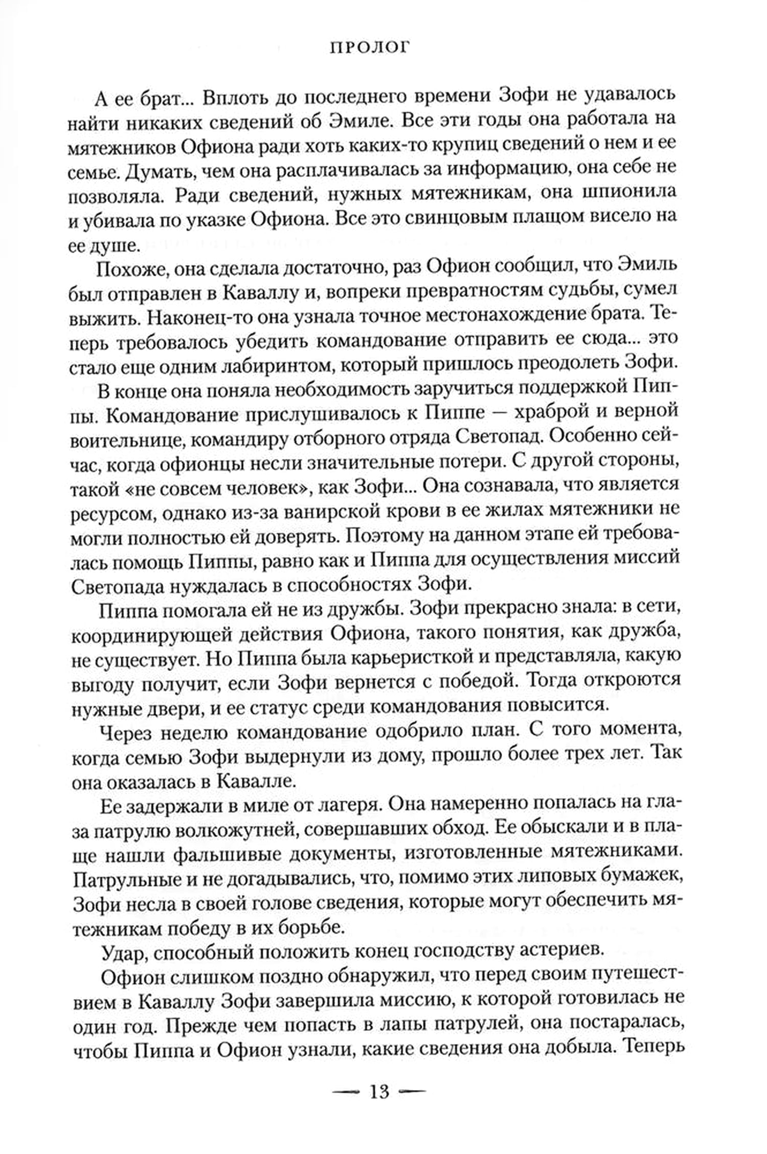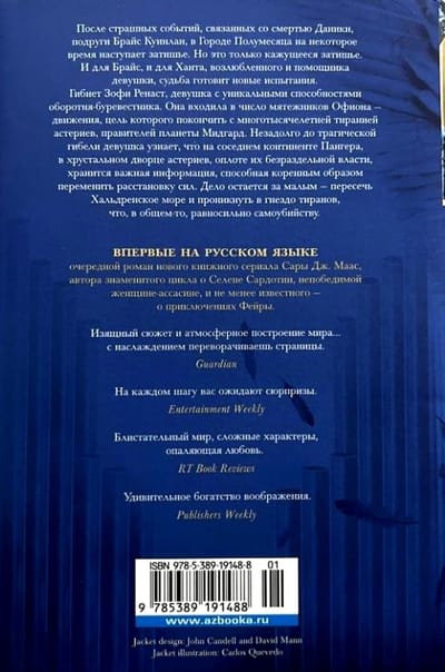 Zofie Renast, a girl with the unique abilities of a werewolf stormtrooper, dies. She was one of the rebels of Ophion, a movement to end the thousands of years of tyranny of the Asterians, rulers of the planet Midgard. Shortly before her tragic death, the girl learns that on the neighboring continent of Panger, in the crystal palace of the Asterians, the stronghold of their undivided power, is stored important information that can fundamentally change the balance of power. The only thing left to do is to cross the Haldren Sea and penetrate the nest of tyrants, which, in general, is tantamount to suicide... For the first time in Russian another novel of the new book series by Sarah J. Maas, author of the famous series about Selene Sardotin, the invincible female assassin, and no less famous about the adventures of Feyra.