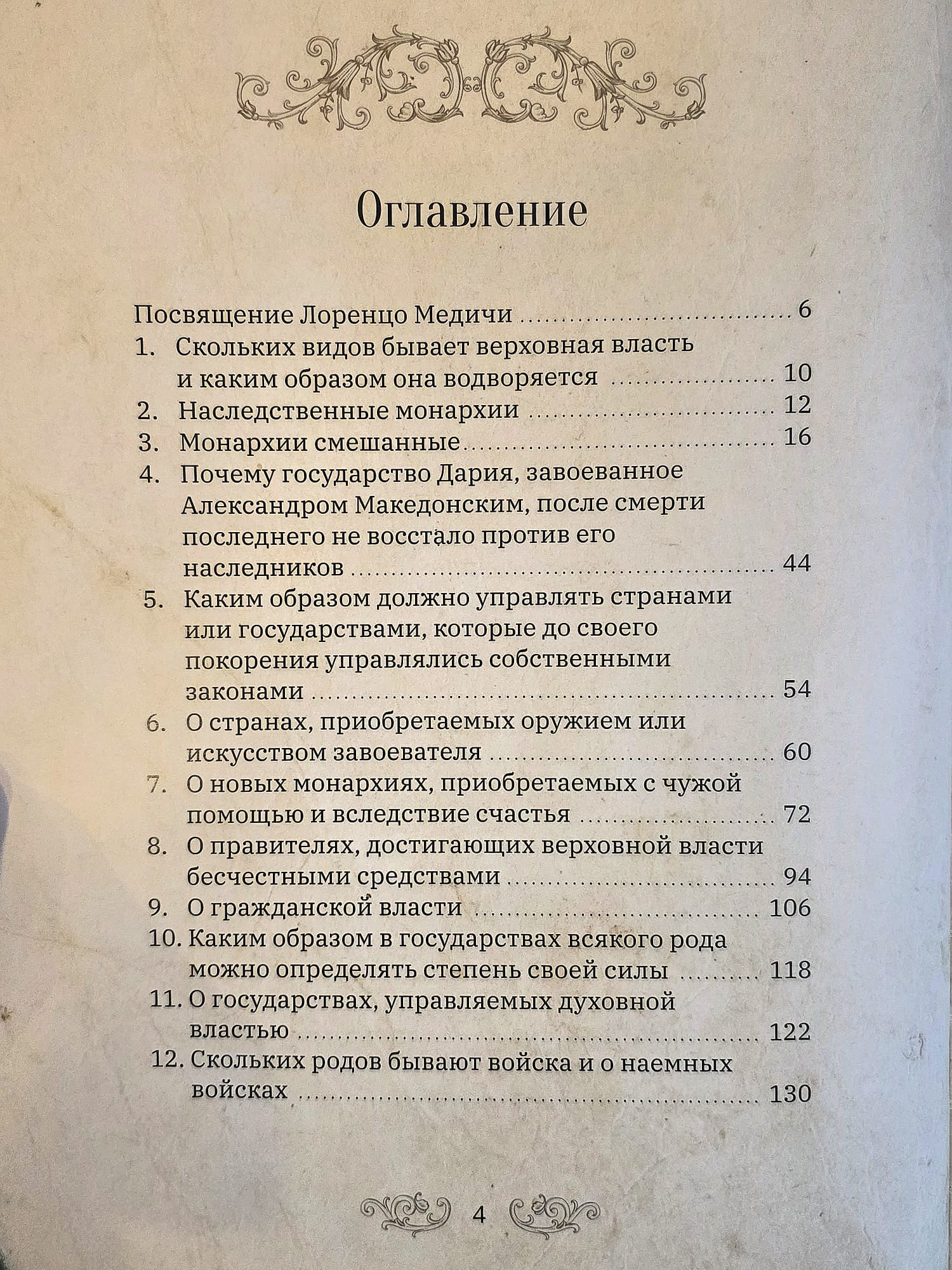The book is based on the author's observations of the political management methods of his era and an analysis of ancient historical examples. Based on this data, he was able to formulate and combine information on the state and its governance into a single treatise. Many of the Florentine thinker's conclusions are still relevant today.