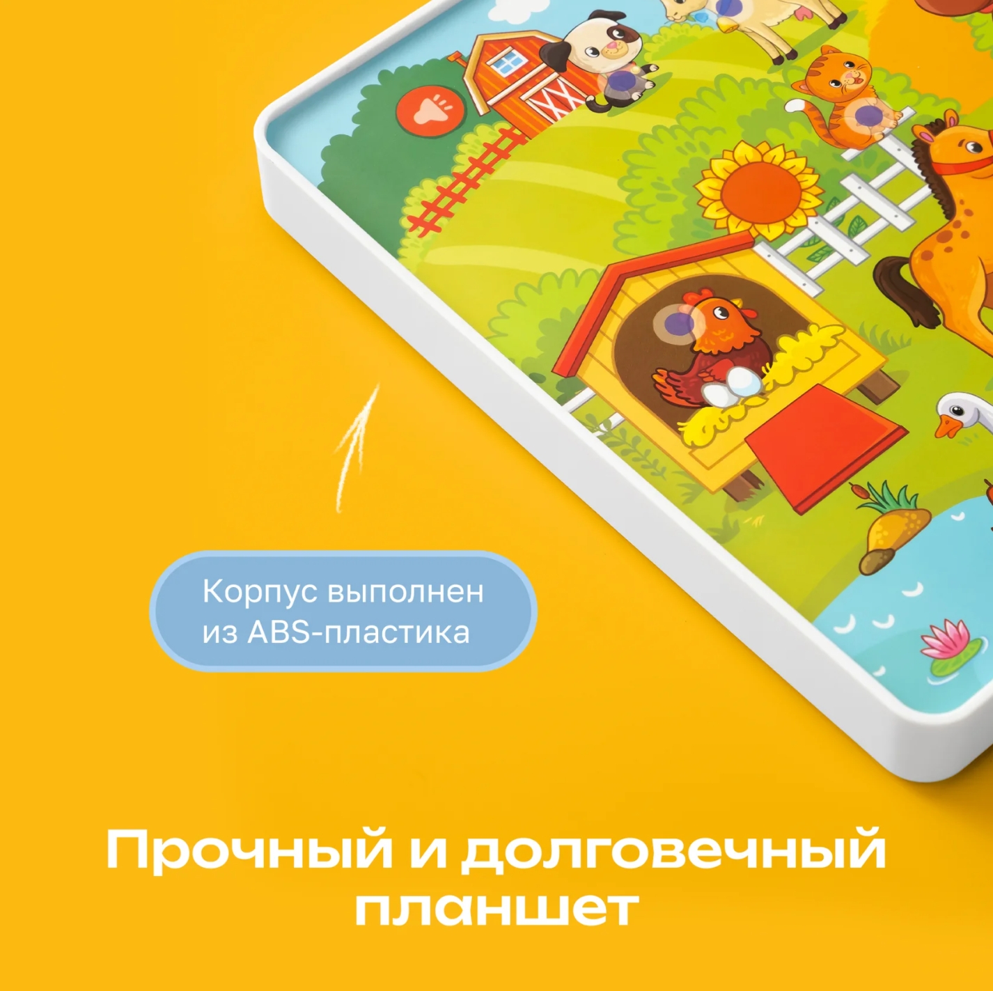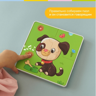 Safe materials: ABS plastic and cardboard. Compact size: easy to take with you. Does not require an internet connection or additional devices. Promotes memory, speech, and cognitive skills. Introduces children to the world of farm animals. A combination of classic puzzle play and modern technology. Durable: engaging for children of all ages. Ease of use: intuitive even for young children.