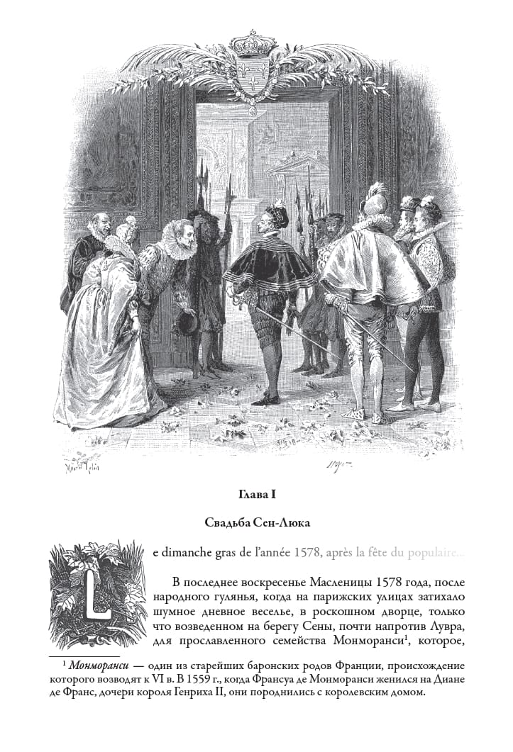 First published in 1846, the novel by Alexandre Dumas père (1802–1870) “The Countess de Monsoreau” was the second part of his trilogy dedicated to the Huguenot wars. The main character of the novel is the beautiful Diane de Meridor, later de Monsoreau. Her affair with the handsome Count de Bussy unfolds against the backdrop of court and political intrigue during the reign of Henry III in France. Thanks to Dumas’s mastery, the novel is a joy to read. The text is translated by Valery Sergeevich Stolbov (part one) and his wife Nina Yakovlevna Butyrina (part two). The book is decorated with illustrations by the French painter, theater and film artist Maurice Leloir (1853–1940). The novel “The Countess de Monsoreau” by Alexandre Dumas is the second part of his trilogy dedicated to the Huguenot wars. The first novel in the series is Queen Margot, and the third is Forty-Five. The trilogy takes place in the second half of the 16th century against the backdrop of almost constant clashes between French Protestants and Catholics. This confrontation regularly shook France under the last kings of the Valois dynasty. Dumas made Marguerite de Valois the heroine of the first novel in the trilogy. She was the daughter of Catherine de Medici, who effectively ruled France for her son, the fifteen-year-old King Francis II. The main character of the second novel in the series is also a woman, the beautiful Diane de Meridor, later Countess de Monsoreau. Her affair with the brilliant Count de Bussy unfolds amid court and political intrigue during the reign of Henry III in France.