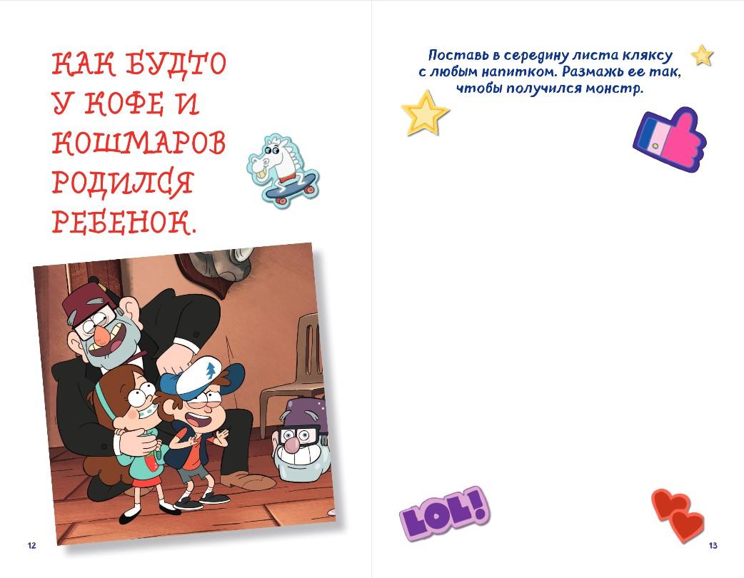 Take your child's mind off the TV or tablet with Gravity Falls! Everything you need is already inside the notebook. Tasks, quests, drawing and wandering, all that's left is to turn on your imagination and show yourself. You can organize a cool challenge and compete with friends, who will complete the task more interesting! Mabel and Dipper are waiting to take the reader on an adventure through the pages of this notebook!