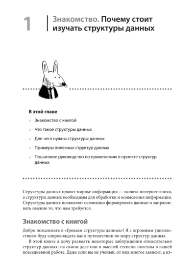 The book is structured from simple to complex: it begins with basic structures such as arrays and linked lists and gradually moves on to more complex ones—stacks, queues, trees, hash tables, and graphs. Each chapter contains practical examples, exercises, and visual illustrations to help reinforce the material. All the theory is supported by examples in Python, one of the main languages for modern development.