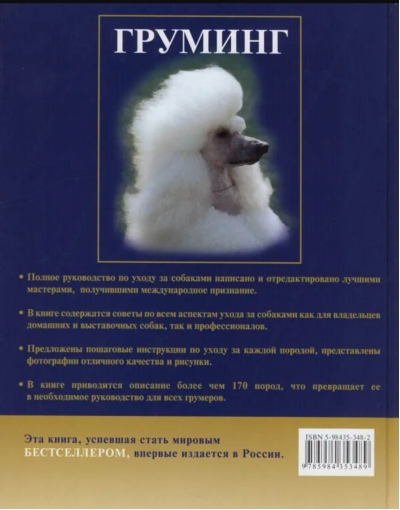 This is a complete guide to dog grooming, written and edited by top international experts. Grooming is a system of measures aimed at keeping the skin and coat healthy, clean, and in good condition. It also includes caring for a dog's teeth, ears, and nails. Grooming is an essential part of dog care. It not only helps keep animals clean and well-groomed but also strengthens the relationship between owner and pet. This book contains advice on all aspects of dog grooming, for both pet and show dog owners, and professionals. It includes step-by-step instructions for each breed, along with high-quality photographs and illustrations. With descriptions of over 170 breeds, this book is a must-have for all groomers.