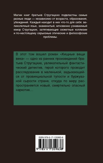 This volume includes the novel "Predatory Things of the Century" - one of the early works of the Strugatsky brothers, a fascinating science fiction detective, the hero of which conducts an investigation in a small, suffocating from provincial stupidity and bourgeois dampness of the country, from where a new, deadly drug is spreading around the world...