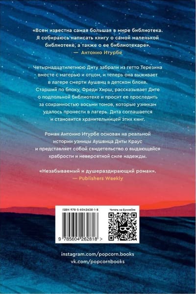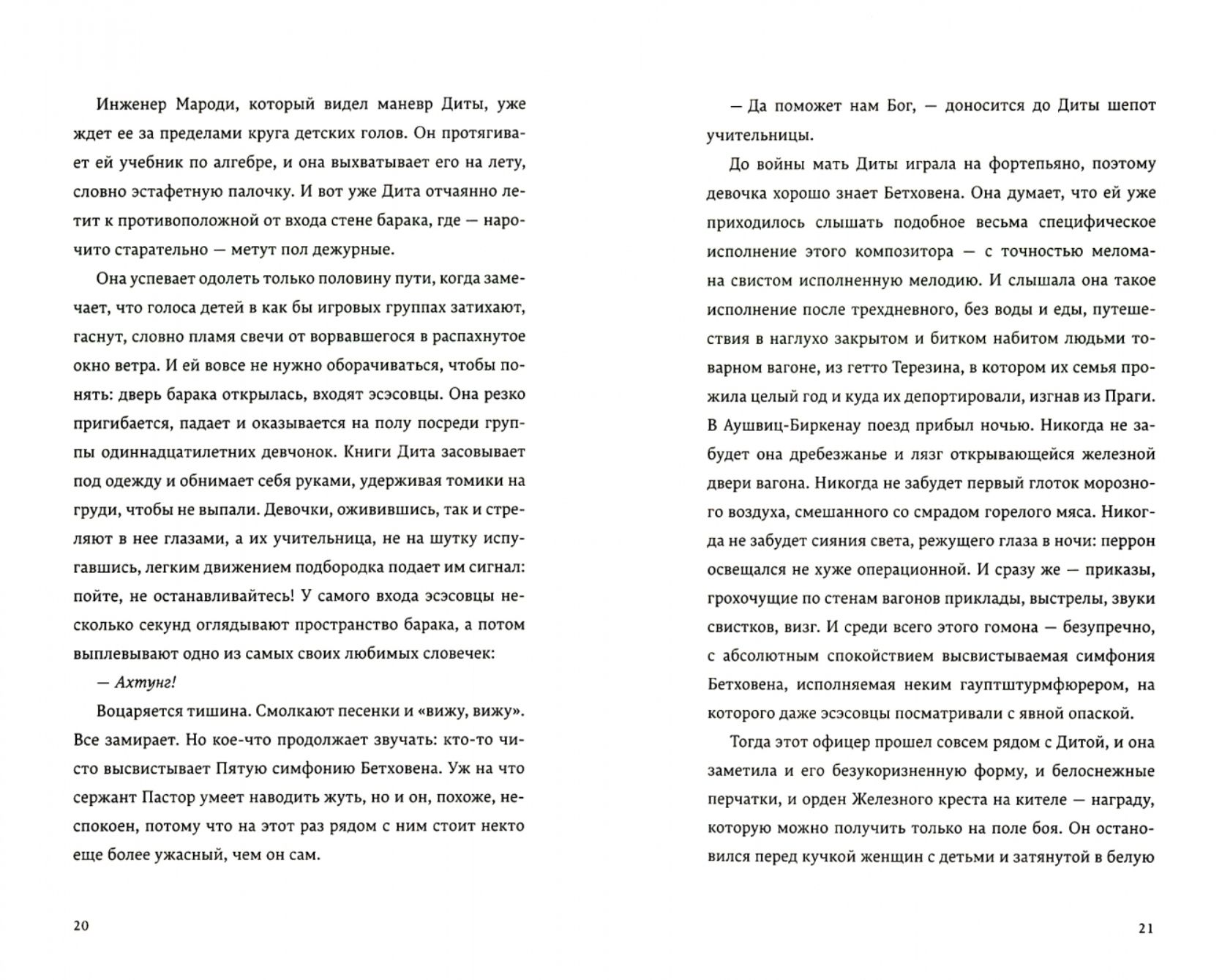 Fourteen-year-old Dita was taken from the Terezin ghetto with her mother and father, and now she survives in the Auschwitz death camp in the children's block. The block leader, Freddy Hirsch, tells Dita about the underground library and asks her to keep an eye on the eight volumes that prisoners managed to smuggle into the camp. Dita agrees and becomes the keeper of these books.