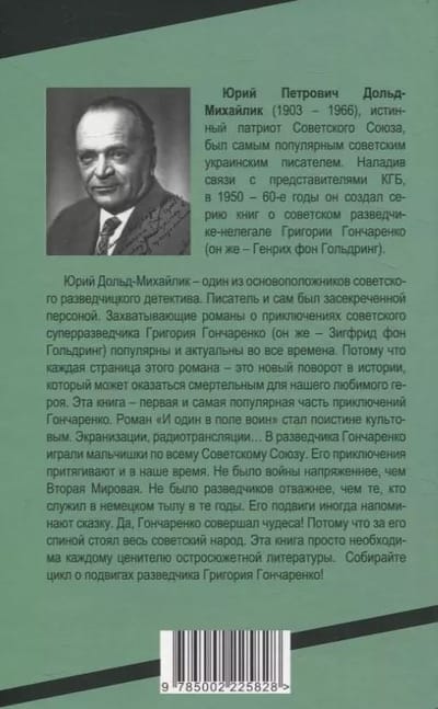 Yuri Dold-Mikhailik is one of the founders of the Soviet intelligence detective story. The writer himself was a classified person. The gripping novels about the adventures of the Soviet super-intelligence agent Grigory Goncharenko (aka Siegfried von Goldring) are popular and relevant at all times. Because each page of this novel is a new turn in history, which can be fatal for our favorite hero. This book is the first and most popular part of Goncharenko's adventures. The novel "And One Warrior in the Field" has become a truly cult classic. Film adaptations, radio broadcasts... Boys all over the Soviet Union played the role of intelligence agent Goncharenko. His adventures are still fascinating today. There was no war more intense than World War II. There were no intelligence agents braver than those who served in the German rear in those years. His exploits sometimes resemble a fairy tale. Yes, Goncharenko performed miracles! Because the entire Soviet people stood behind him. This book is a must for every connoisseur of action-packed literature. Collect the series about the exploits of intelligence officer Grigory Goncharenko!