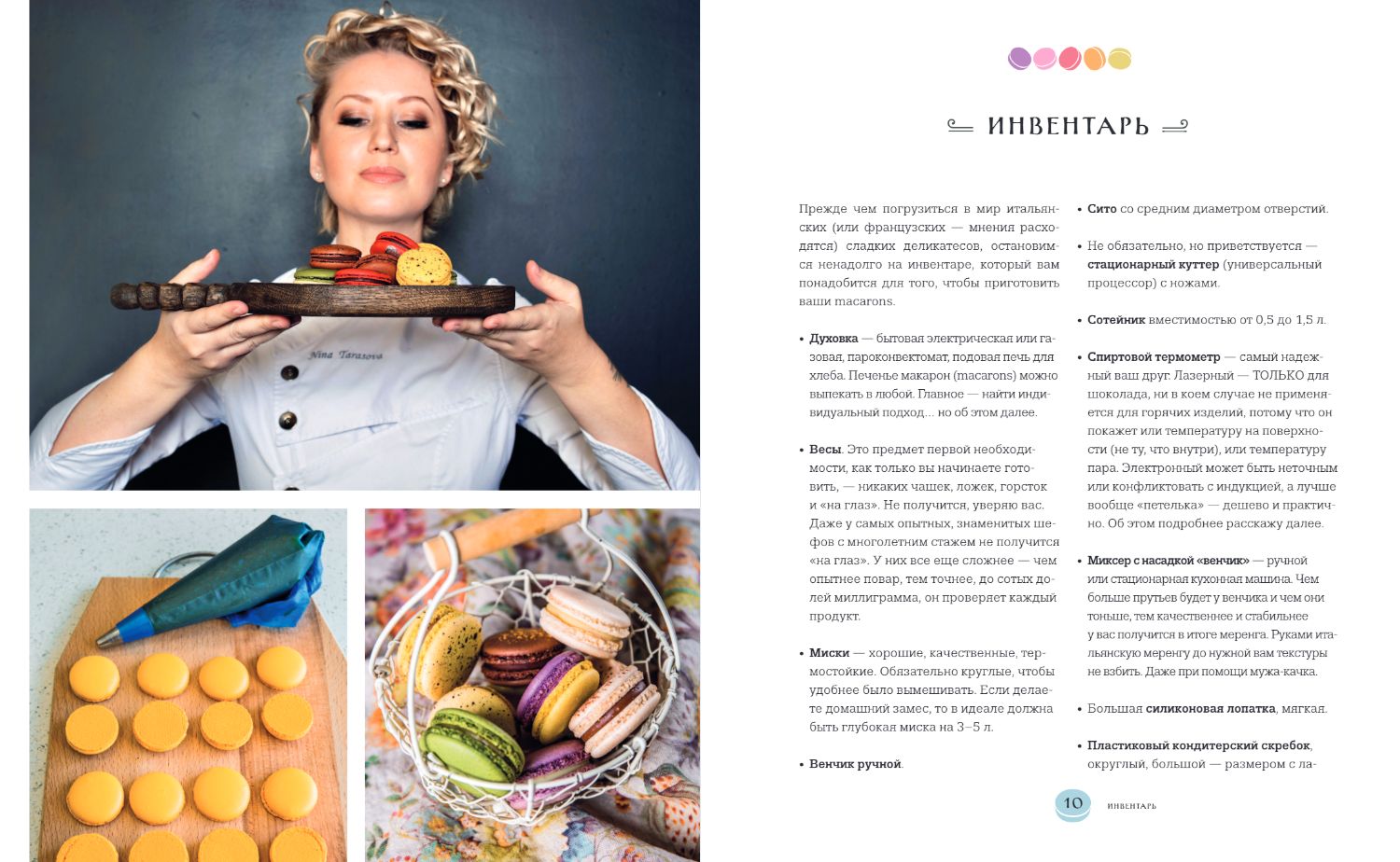 Macaron is a sophisticated French dessert that beckons with its perfect shape and exquisite flavor. It seems that it is impossible to prepare it at home. Just the myths associated with the preparation of this capricious product made of almond flour, scare away seriously and for a long time. Nina Tarasova admits that she too was frightened by the myths and legends enveloping the recipes. She solved the problem with a radical method - she enrolled in a pastry course in Paris, and then, of course, practiced a lot. The first desserts were far from ideal, and sometimes they did not turn out at all, but after many years of constant and hard work and training, Nina was able to achieve perfection. Now the world-renowned pastry chef shares her knowledge and real practical experience with you. This is the first book that describes in such detail all the nuances, techniques of cooking macarons, all, without exception, possible mistakes and how to avoid them. Here are collected accurate, working recipes, as well as secrets that will help you get the perfect French masterpieces in miniature in a simple home kitchen. You will learn how to prepare a basic dessert base, and on top of that, the book contains over 50 recipes for fillings to suit every taste: sweet, savory, vegan, and amazing cakes based on the perfect little almond macaroon cookies.