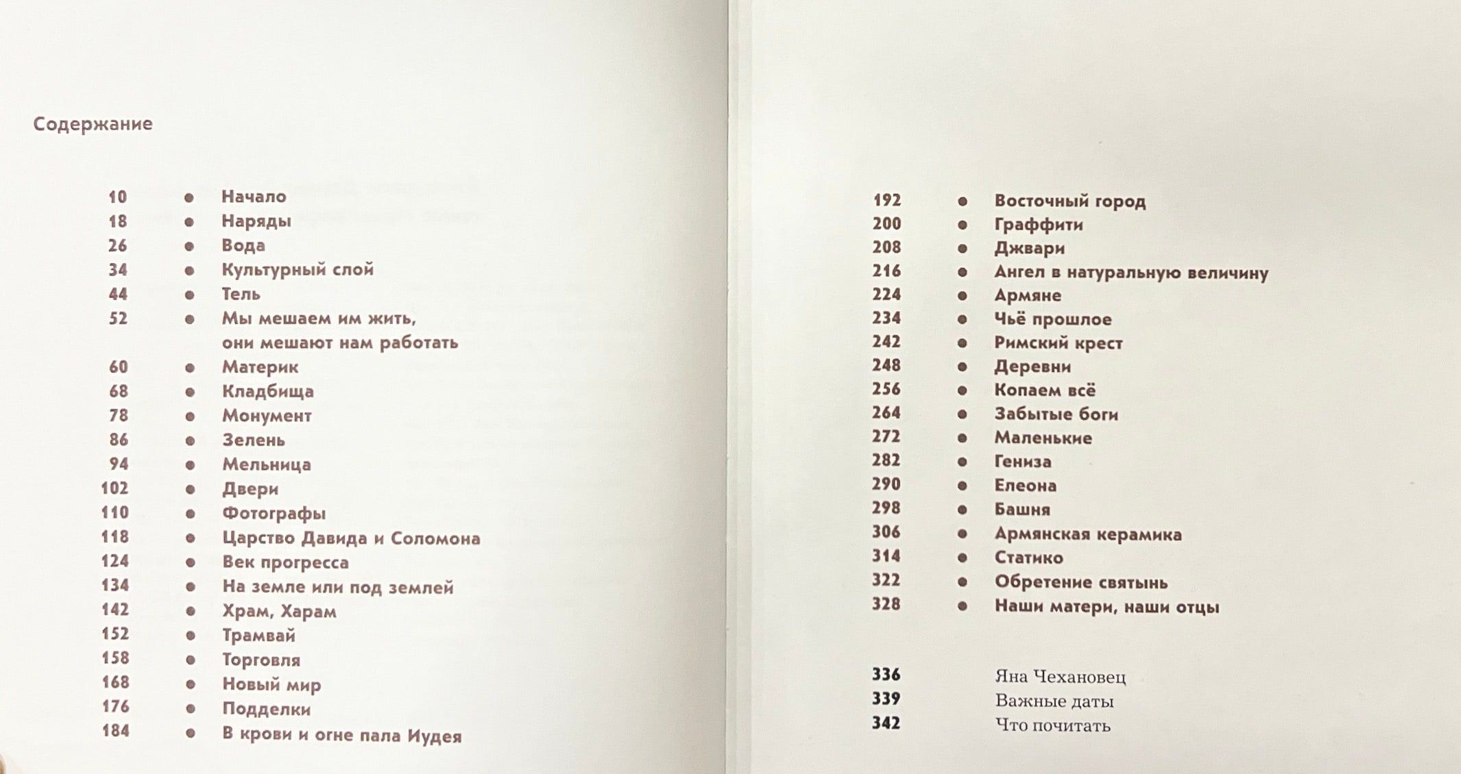 In his book, the author tells about the first Jerusalem archaeologists, forgeries of antiquities, the quirks of numbering Jerusalem doors, how Georgians and Armenians appeared here, ancient graffiti, how difficult it is to dig in Jerusalem and impossible to stop digging, dark periods of history, the first temple never found, the first photographers of Jerusalem, the menu of Jerusalemites of the 8th century AD and much more. And all this accompanied by the author's photographs and the most curious archival materials.