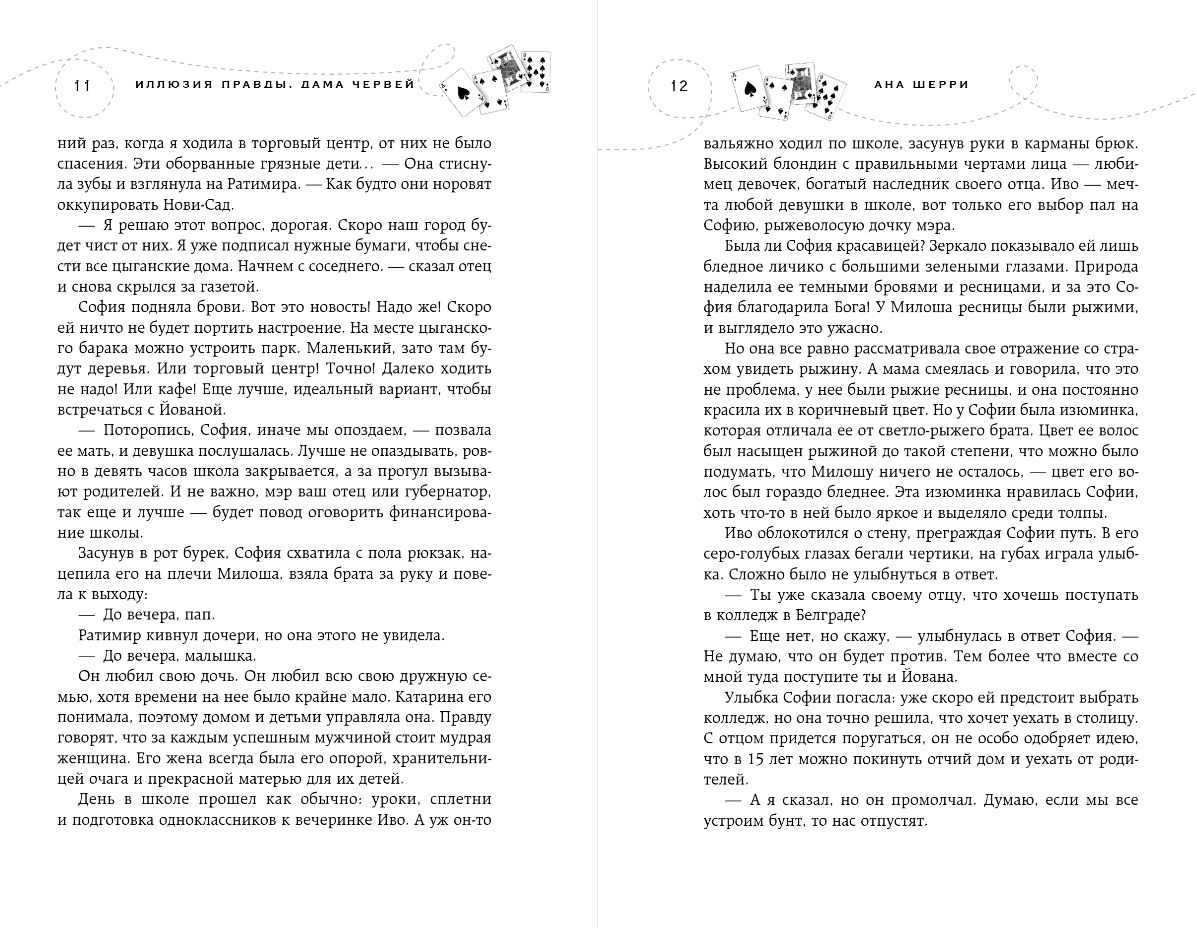 A new story from mega-popular Russian author Ana Sherry. Walking on a razor blade, dangerous connections, burning love and gypsy passions - all this is in the first book "The Illusion of Truth. The Lady of Hearts." Total sales of Ana Sherry's books have long since passed the 500,000-copy mark. Her stories rank alongside other stars of sentimental prose such as Anna Jane and Anna Todd.
