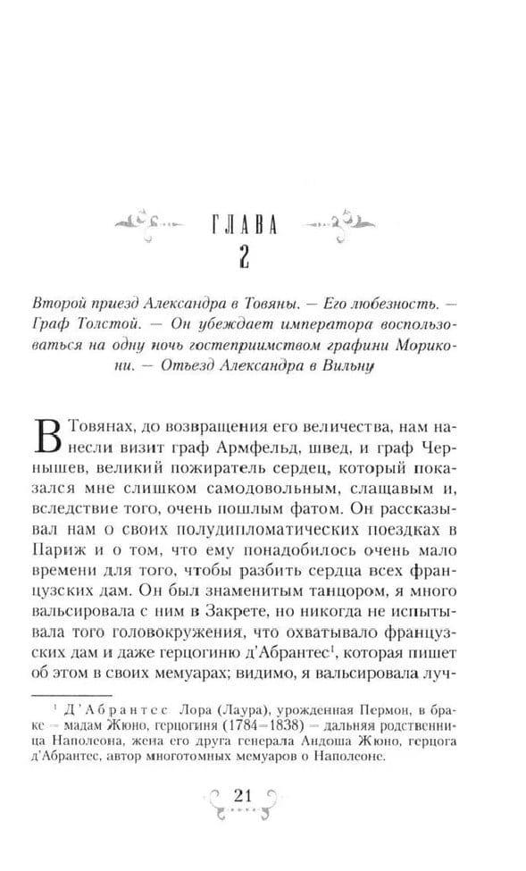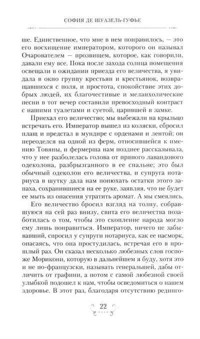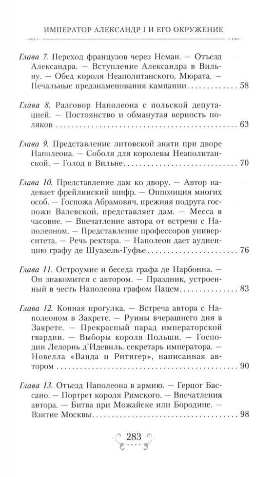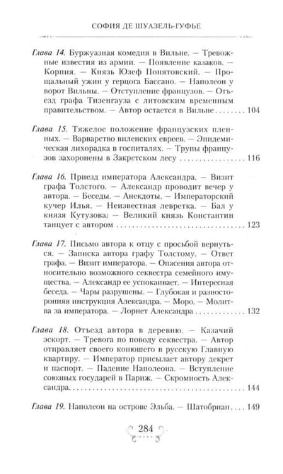 A member of the Polish-Lithuanian aristocracy, Countess Sophie de Choiseul-Gouffier held the court rank of maid of honor in the retinue of the Russian empresses Elizabeth Alexeyevna (wife of Alexander I) and Maria Feodorovna (mother of Alexander I). In 1812, she met the Russian Emperor Alexander I, with whom she developed a friendship that lasted until the end of the Russian monarch's life. During the Patriotic War of 1812, she survived the French occupation in Vilnius, where she met with Napoleon Bonaparte, demonstratively supporting the Russian emperor and his policies. These memoirs are not only personal recollections of meetings with Emperors Alexander I and Napoleon, and Field Marshal M.I. Kutuzov, whom she also knew, but also a story about the reign of Alexander I, the Russo-French War, and the fate of Vilnius during its occupation and liberation by the Russian army.