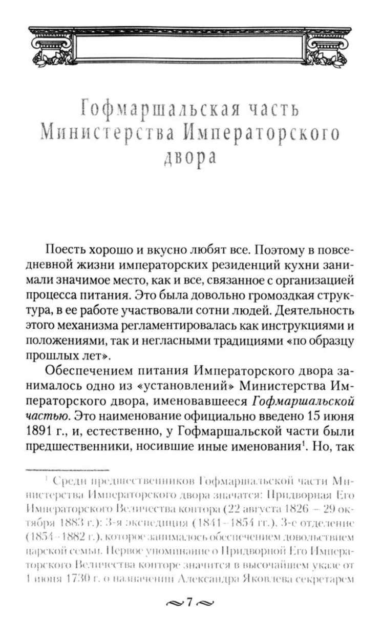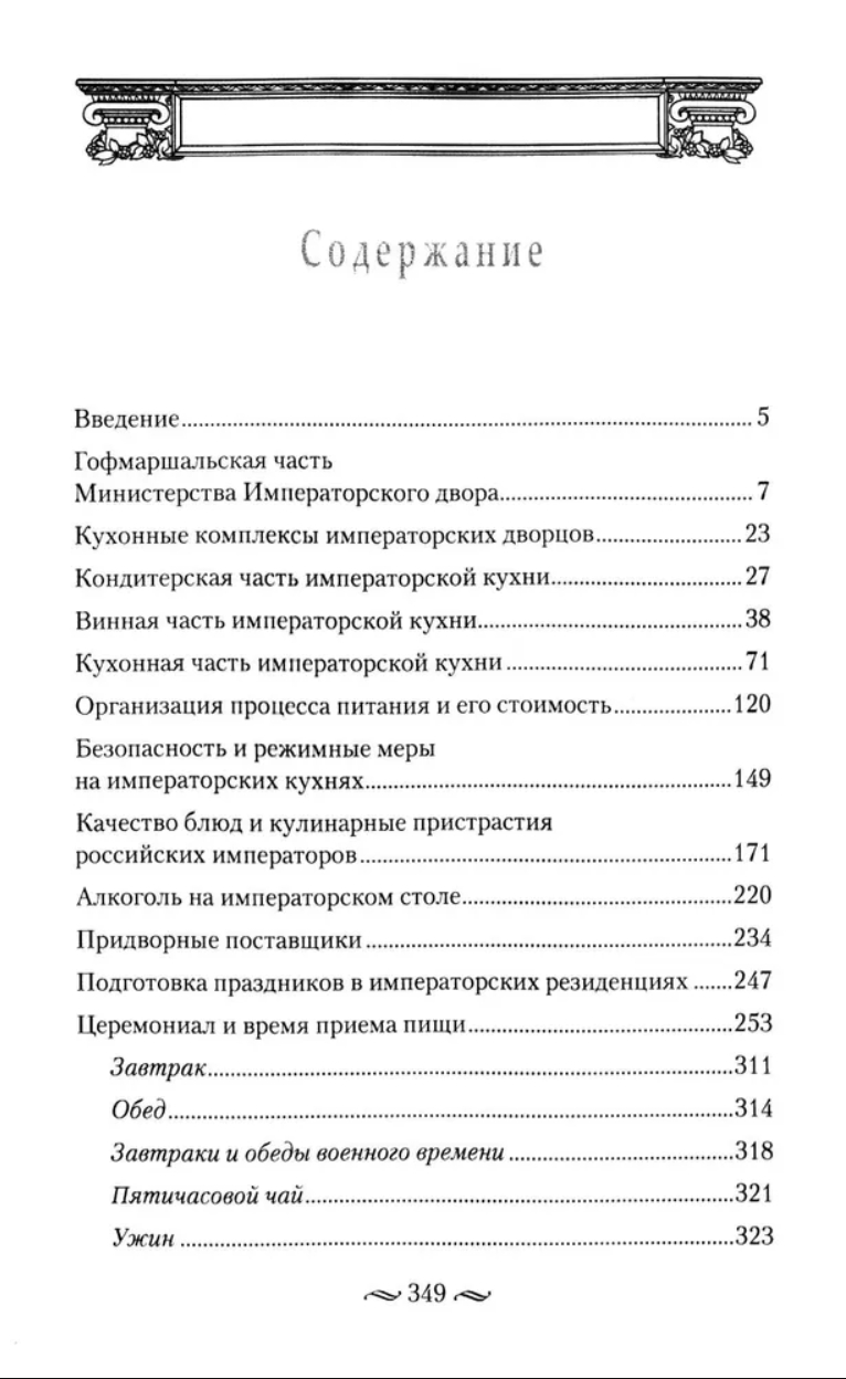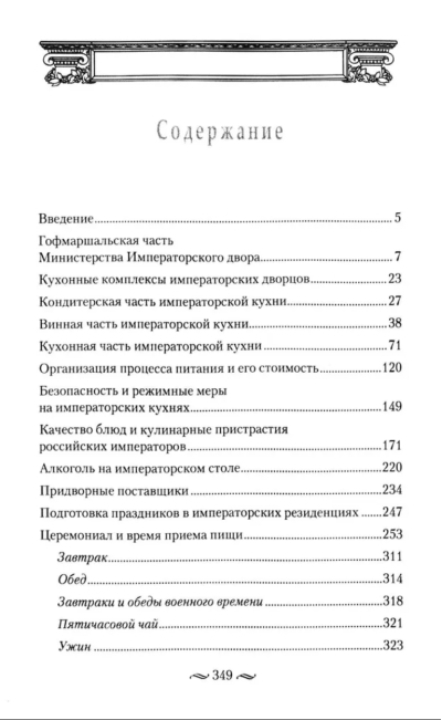 The book tells a lot of curious and sometimes unexpected things about the complex organization of catering processes of all categories of inhabitants of imperial residences - from the families of monarchs and high-ranking courtiers to regular palace servants and thousands of people invited to the feast. You will learn about the culinary preferences of Russian emperors, about the quantity and range of alcoholic beverages on the tsar's tables. How the quality of food was controlled and safety was ensured in the imperial kitchens, about the peculiarities of the sovereigns' meals outside the walls of the residences, in the field - in war, hunting, during country picnics.