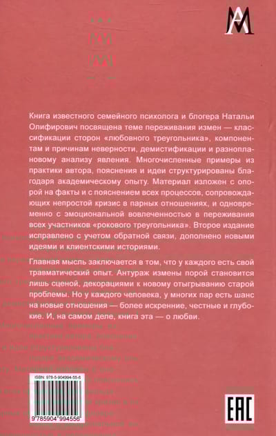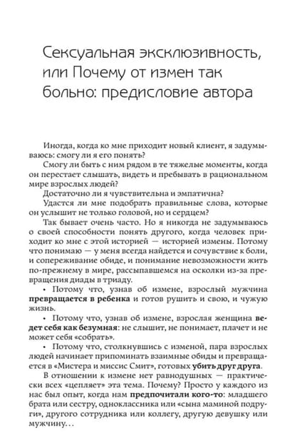 The book's central idea is that everyone has their own traumatic experience, and infidelity often becomes a stage where our wounded selves perform an old play in a new way. This is why the author believes that every couple has a chance for a new relationship—one that is more sincere, honest, and profound. But to achieve this, certain steps must be taken, which you will learn more about in the book.