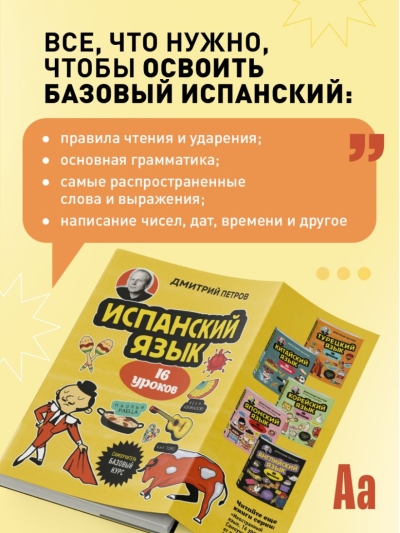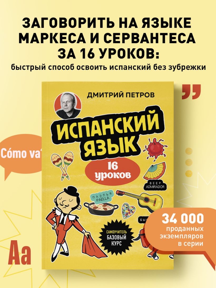 Did you know that Spanish is the second most widely spoken native language in the world? This self-study guide will open the door to the colorful world of Spanish-speaking countries. Speak fluently in the language of Márquez and Cervantes, sing along to the songs of Enrique Iglesias and Rosalía, chat with the locals on the streets of Barcelona... Dmitry Petrov's self-study guide will help you take your first step into the amazing, vibrant world of Spanish-speaking countries!