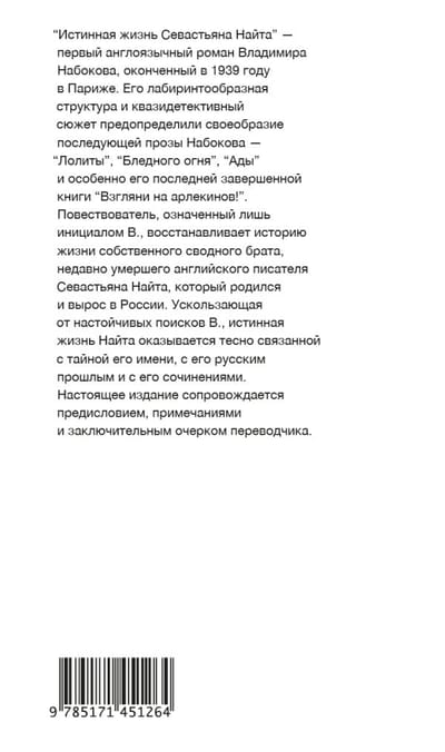 The Real Life of Sebastian Knight is Vladimir Nabokov's first English-language novel, completed in 1939 in Paris and published in the United States two years later. Its labyrinthine structure and quasi-detective plot predetermined the distinctiveness of Nabokov's subsequent fiction—Lolita, Pale Fire, Ada, and especially his last completed book, Look at the Harlequins! The narrator, identified only by the initials V., reconstructs the life story of his half-brother, the late writer Sebastian Knight, using memoirs, oral histories, and excerpts from Knight's books. Eluding V.'s persistent search, Knight's true life proves directly connected to the mystery of his name, his writings, the laws of literary art, and Nabokov's metaphysics. This edition of the novel includes a preface, notes, and a concluding essay by the translator. The translator's spelling, punctuation, and transliteration have been preserved.