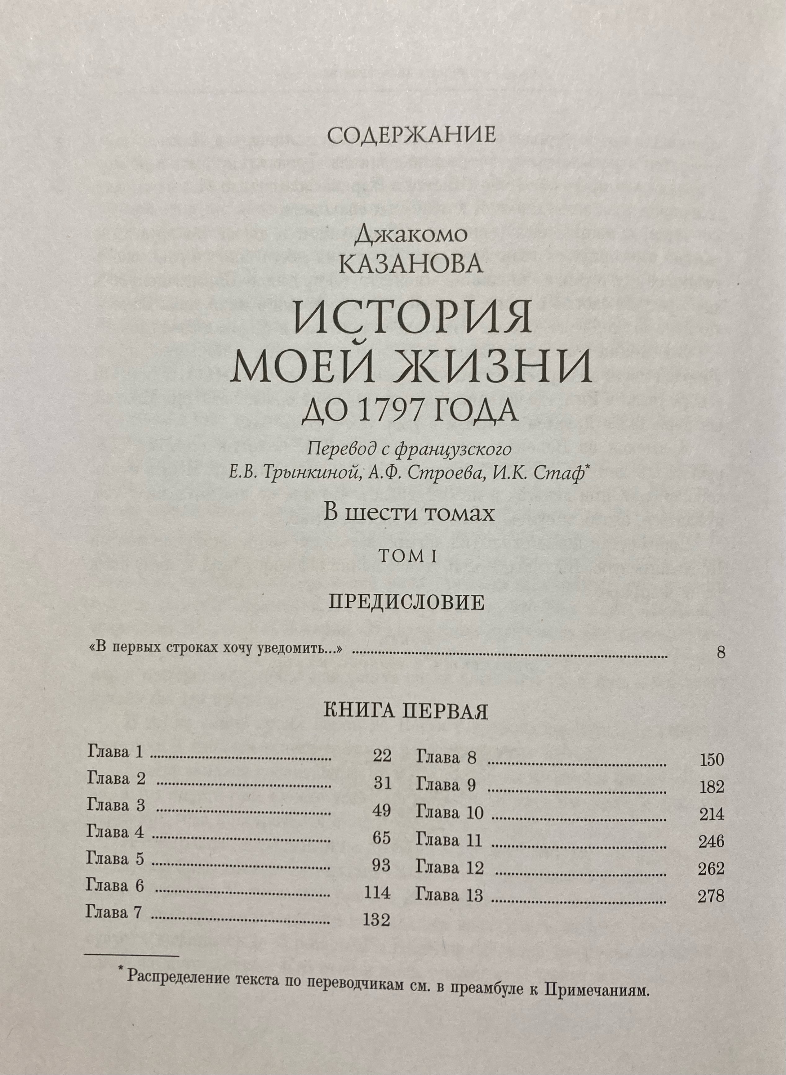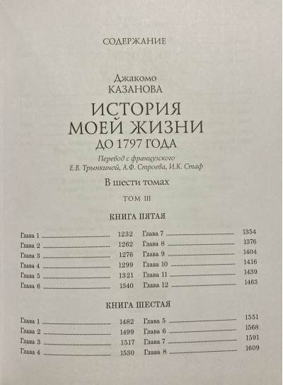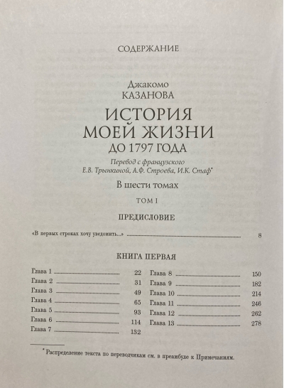 Most of the translation of "History..." was completed by E. V. Trynkina, renowned for her masterful translations of French classics. She also compiled most of the notes, as well as annotated indexes and a chronology of Casanova's life and work.