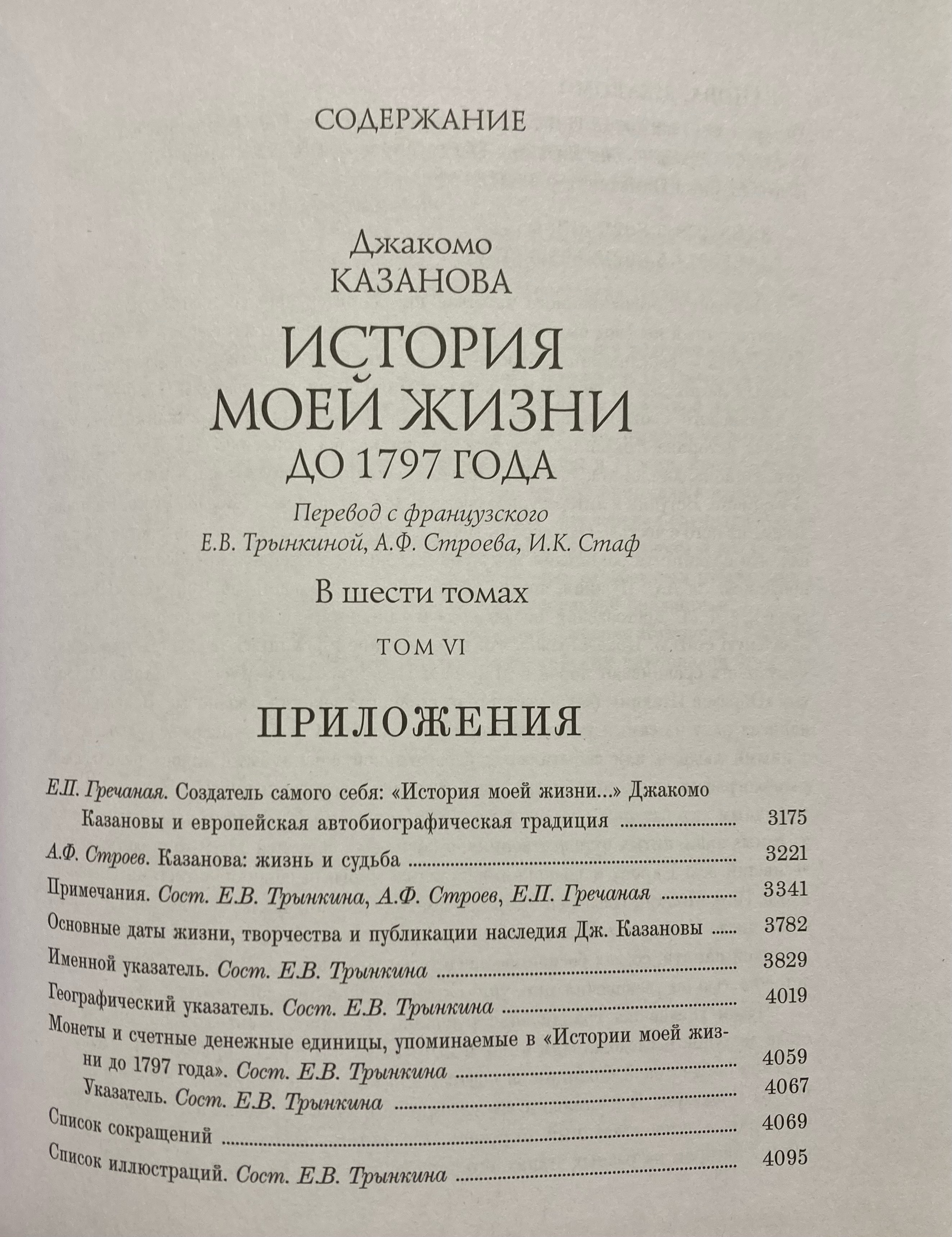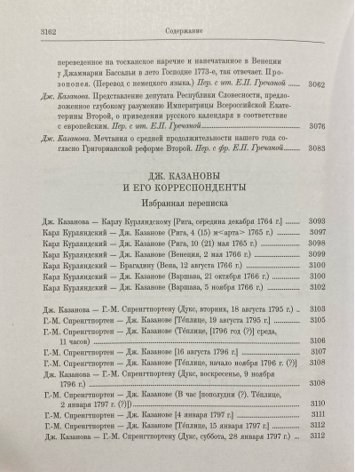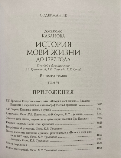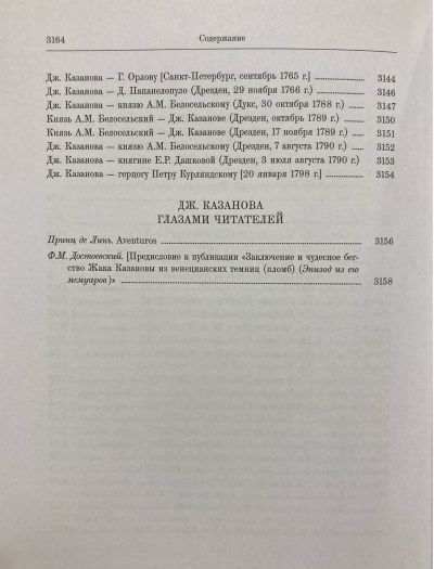 Since the Venetian's views on Russia are of particular interest to the reader, the "Supplements" section also includes texts by G. Casanova, translated into Russian for the first time, as well as correspondence with his Russian correspondents.