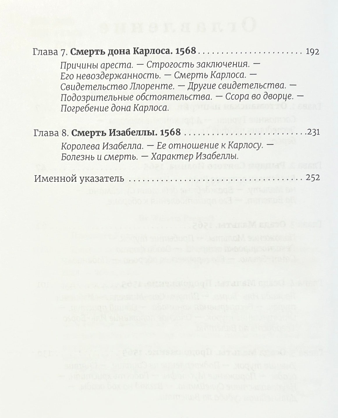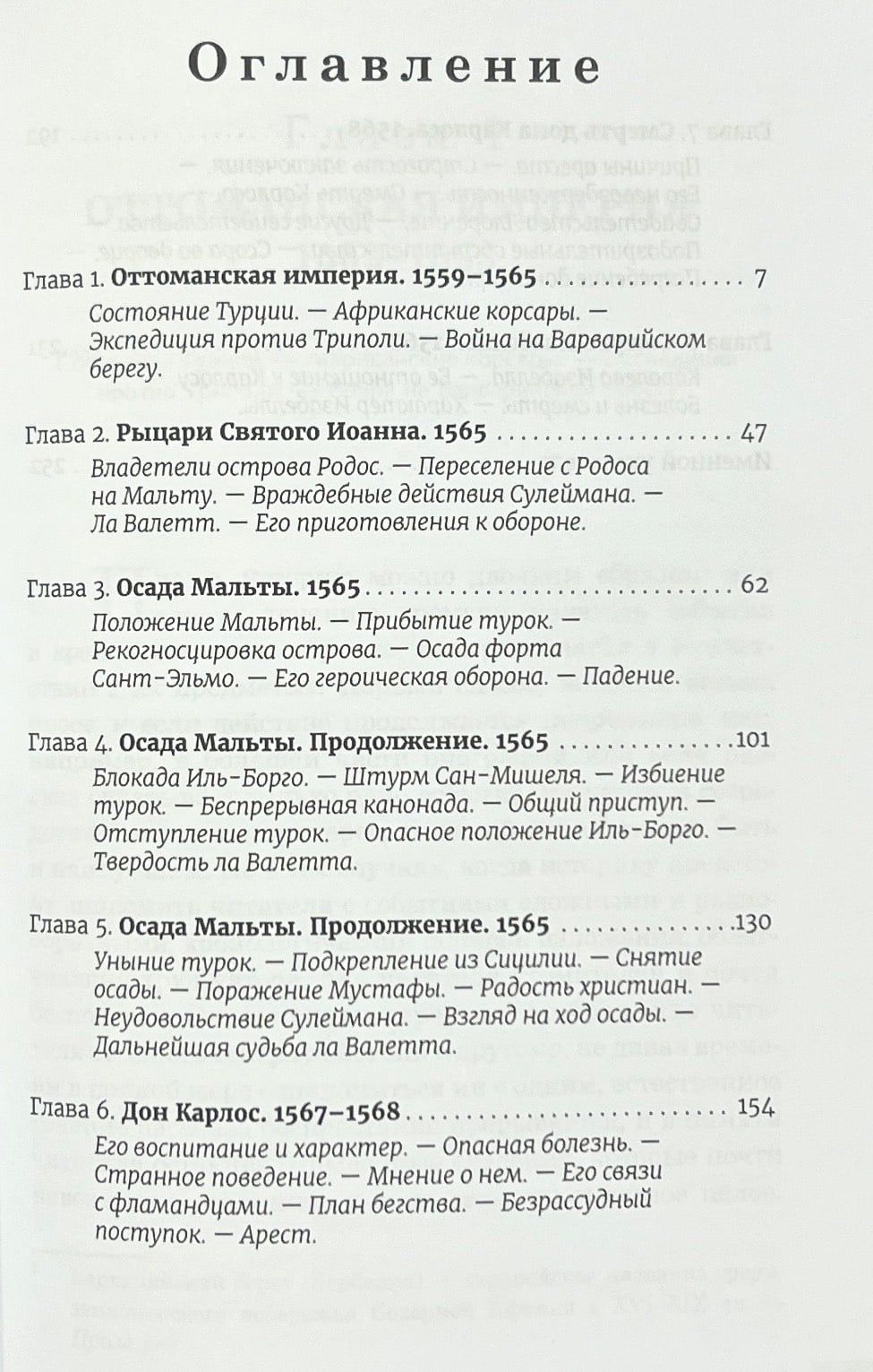 The fourth book, The History of the Reign of Philip II, describes the military actions against the Ottoman Empire from 1559 until the siege of Malta in 1565. The last chapters of the book are devoted to the story of Philip II's son, Don Carlos, and end with the death of Queen Isabella.
