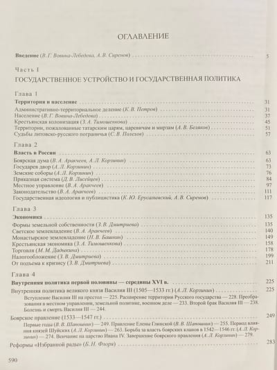 the formation of a unified Russian state. It examines Russia's domestic and foreign policies in the 16th century—the reigns of Vasily III, Ivan IV the Terrible, the reforms of the "Chosen Council," the oprichnina, the reign of Fyodor Ivanovich, the capture of Kazan, the Livonian War, the annexation of Siberia, and other topics. It analyzes victories and defeats, reforms and repressions, crises and their resolution on the path to the creation of a multinational state. Special attention is given to the development of the state's territory, relations with neighbors to the west and east, the system of government, and the occupations of the population.