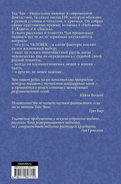 Ted Chiang is a unique phenomenon in modern science fiction, a true sci-fi star adored by readers and critics alike. He has garnered the most prestigious awards, including four Nebula Awards, five Hugo Awards, and four Locus Awards.