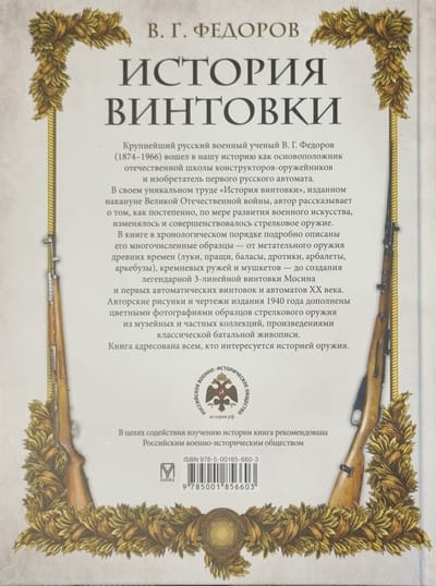 In his unique work "History of the Rifle", published on the eve of the Great Patriotic War, the author tells how small arms gradually changed and improved as military art developed. The book describes in chronological order its numerous examples - from throwing weapons of ancient times (bows, slings, balases, darts, crossbows, arquebuses), flintlock rifles and muskets - to the creation of the legendary 3-line Mosin rifle and the first automatic rifles and assault rifles of the 20th century.