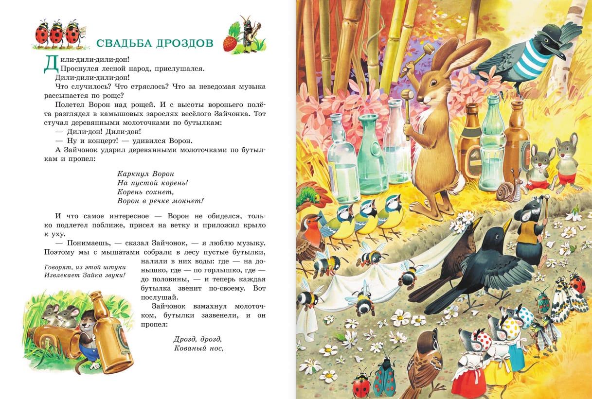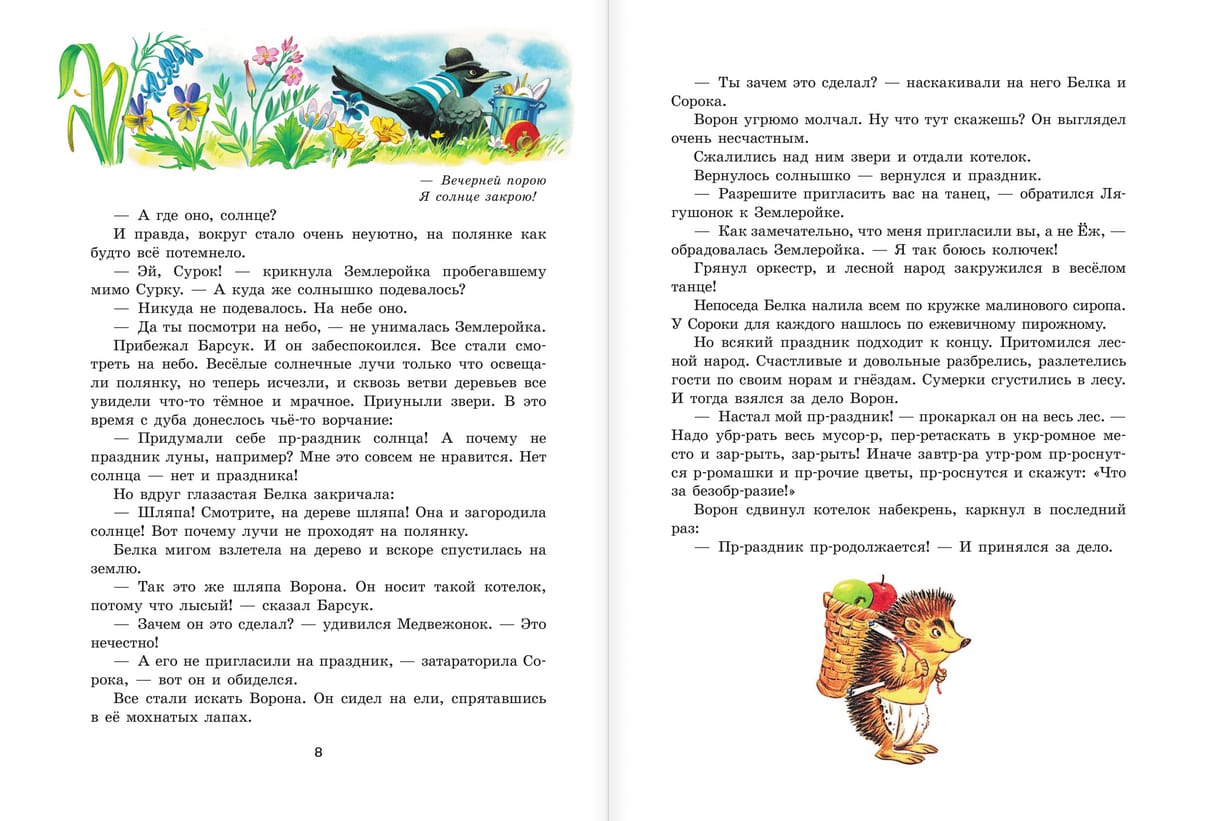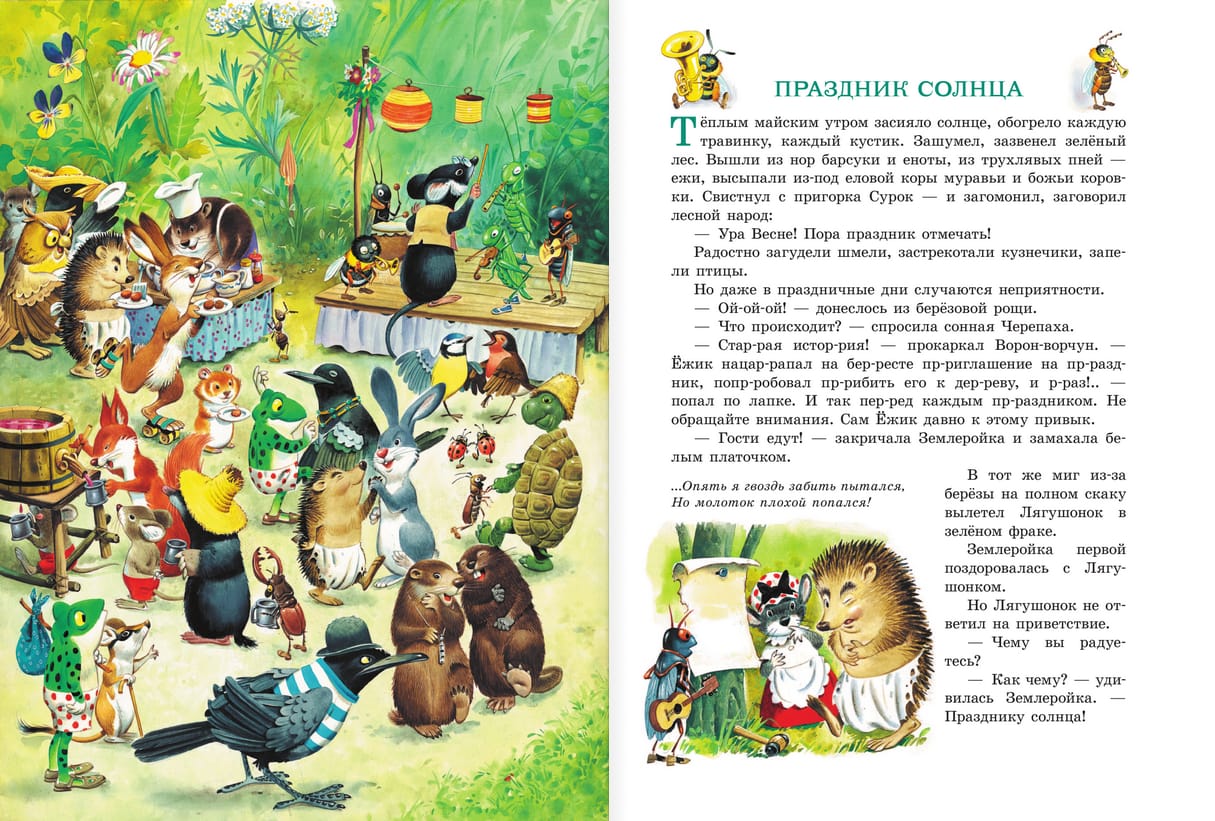The Emerald Book of Fairy Tales includes stories from the life of one magical forest, where fairies, dwarves, dragons and other fantastic creatures live. They live in the neighborhood, sometimes go to visit each other, quarrel, reconcile, establish competitions and, of course, help each other. Especially for children these fairy tales were retold by I. Tokmakova and V. Boyarinov, and the illustrations were drawn by the famous Italian artist Tony Wolf, and other artists