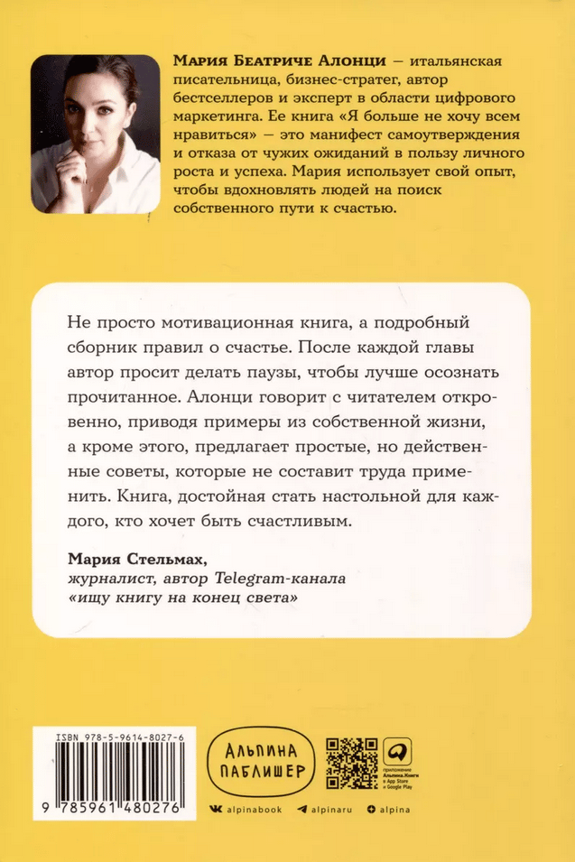 Becoming happy is easier than it seems. You don't need to make drastic changes in your life or achieve lofty goals. But we are hindered by the heavy burden we take with us on the road to happiness: other people's expectations, societal standards and prejudices. This makes us hostage to other people's beliefs, pushing our personal aspirations and needs into the background.