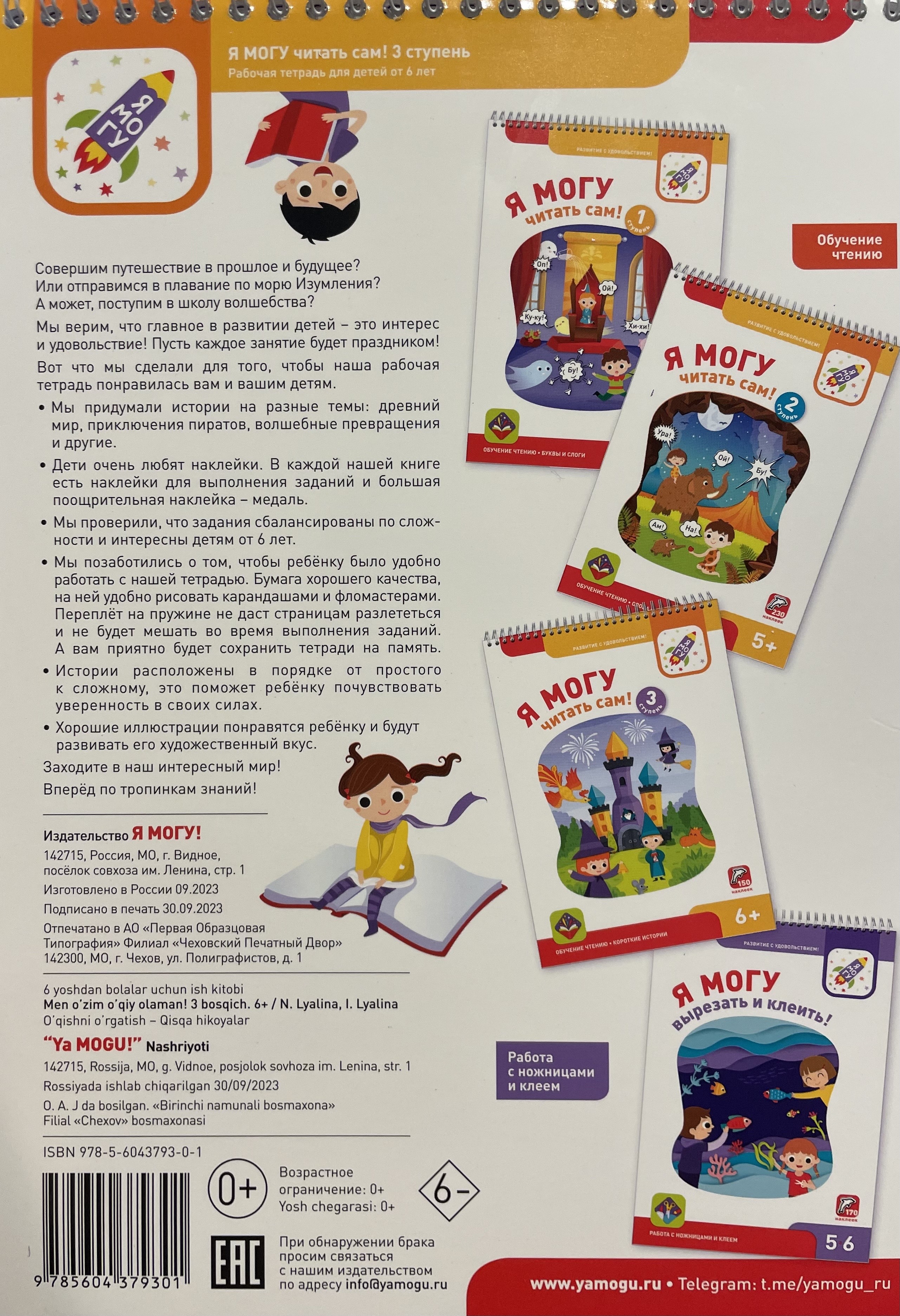 Are you ready for adventure? In the third part of the "I Can Read Myself!" notebook, your child will join the heroes as they enroll in a school of magic, set sail on the Sea of Amazement, and travel in a time machine. Along the way, they'll encounter puzzles, encrypted letters, riddles, and other engaging word games. This notebook is suitable for children who are already proficient in spelling. Exciting stories and activities will engage your child, significantly increasing their reading speed and improving their comprehension, gradually moving from comics to reading full-length text. The notebook includes two sheets of 150 stickers, a favorite among children. The laminated, reusable stickers can be re-applied without tearing.