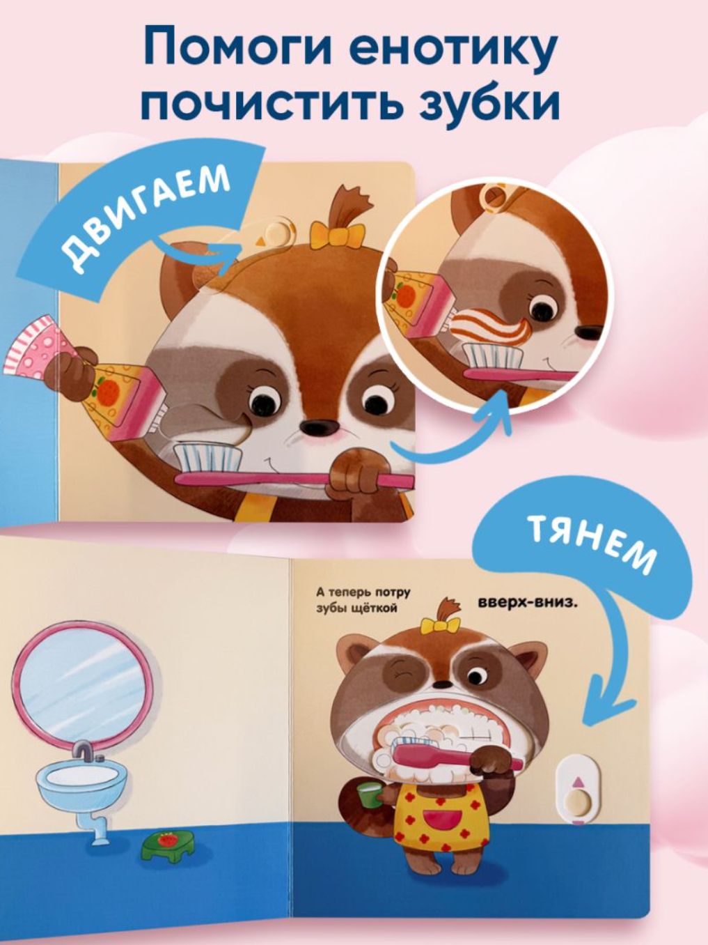 Bright and expressive illustrations and interesting details turn reading into an exciting game. Little ones can pull the pull-out panels and open the windows, developing fine motor skills and showing curiosity.