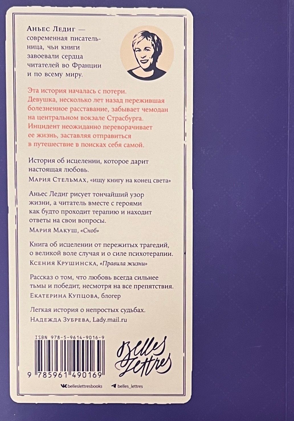 This story began with a loss. A girl who had a painful breakup a few years ago forgets her suitcase at the central station in Strasbourg. The incident unexpectedly turns her life upside down, forcing her to embark on a journey in search of herself. Her guides are Adrian, a strong but vulnerable man, and his unusually sensitive dog Bloom. Can the two lost souls find common ground and help each other? "I Return to Myself" is a poignant story about going through the pain of loss and loneliness to find healing. Agnès Ledig masterfully intertwines the fates of the characters, and the question of whether they will find the strength to accept the past and open to the future, remains open until the final pages of the novel.