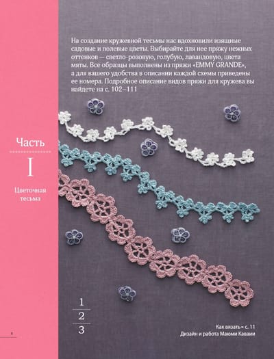 Exquisite borders, edges and fringes from the best Japanese masters with clear and understandable schemes, amazing illustrations, examples of use for clothing decoration, making accessories, interior decoration or gift wrapping, favorite in the Japanese tradition floral motifs, amazing variety, from geometry to fantasy compositions, from snow-white to pastel or bright colors.