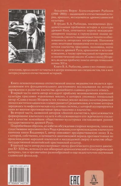 This book is the work of Academician B.A. Rybakov, a distinguished historian and archaeologist, expert on the culture of ancient and medieval Rus', and the founder of the Russian school of medieval studies. It is a continuation of his fundamental two-volume study on the history of the origin and development of paganism among the ancient Slavic-Russian ethnos.