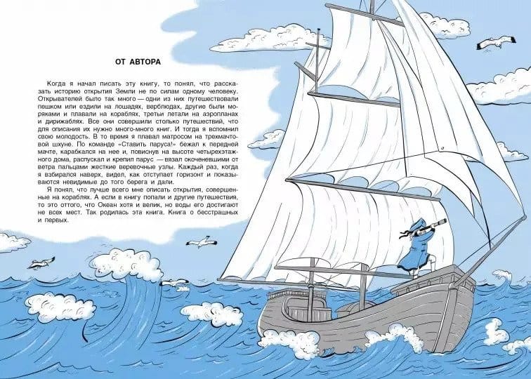 Since ancient times, people have been striving beyond the boundaries of the developed, familiar lands. What is there, beyond the horizon, beyond the sea, at the North Pole? Traveled on foot, on horses and camels, on rafts and ships, airships and airplanes ... This book tells about the discoveries made by seafarers. It is not surprising that its author, Svyatoslav Vladimirovich Sakharnov, chose this theme. The writer graduated from a naval school, was a long-distance navigator, participated in expeditions to the Arctic, the Commander and Kuril Islands, Cuba. The efforts of a man in love with the sea gave birth to this book about the brave and the first: from the ancient Phoenician sailors and Normans to James Cook and Roald Amundsen.