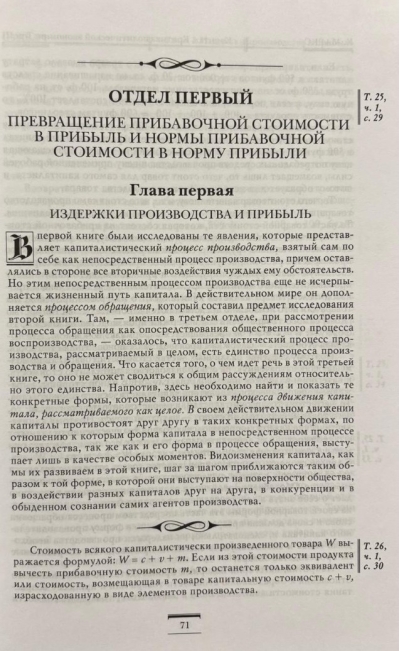 In preparing this edition, the experience of both classic Soviet editions and the latest German edition, published as part of the international MEGA project, was taken into account. The text of Volume III is published with a revised translation of several passages and commentary, free of the biased assessments of previous years. The appendix contains excerpts from "The Theories of Surplus Value" devoted to the analysis of D. Ricardo's theories of rent and production costs, as well as a fragment from the chapter on capital from the Grundrisse, relevant to the issues of Volume III. The text of Volume III is accompanied by double pagination in the margins, as well as an index of names, updated according to the latest German edition.