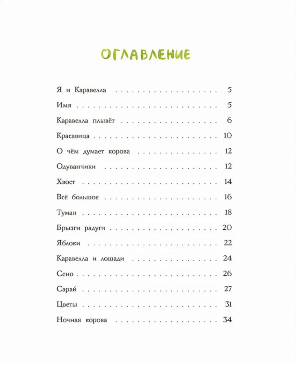 A truly summery story by Olga Fadeeva, colored with the artist's bright watercolors, will introduce young readers to Caravel - a cow who is well-mannered and knows about beauty. Why is she called that, how does Caravel swim, why do you salt hay and why are cucumbers called horses? It turns out that every day in the village hides many discoveries and wonders, the most remarkable of which is Caravel.