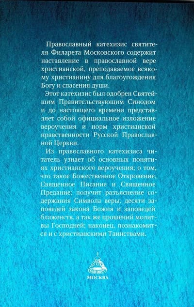 "The Extensive Christian Catechism of the Orthodox Catholic Eastern Church", compiled by Saint Philaret of Moscow, was reviewed and approved by the Holy Synod and was repeatedly republished as a teaching aid for teaching in schools and for use by all Orthodox Christians." Saint Philaret in his "Catechism" explains to every Christian in an accessible form the essence of the Orthodox faith and the foundations of Christian morality for pleasing God and saving the soul.