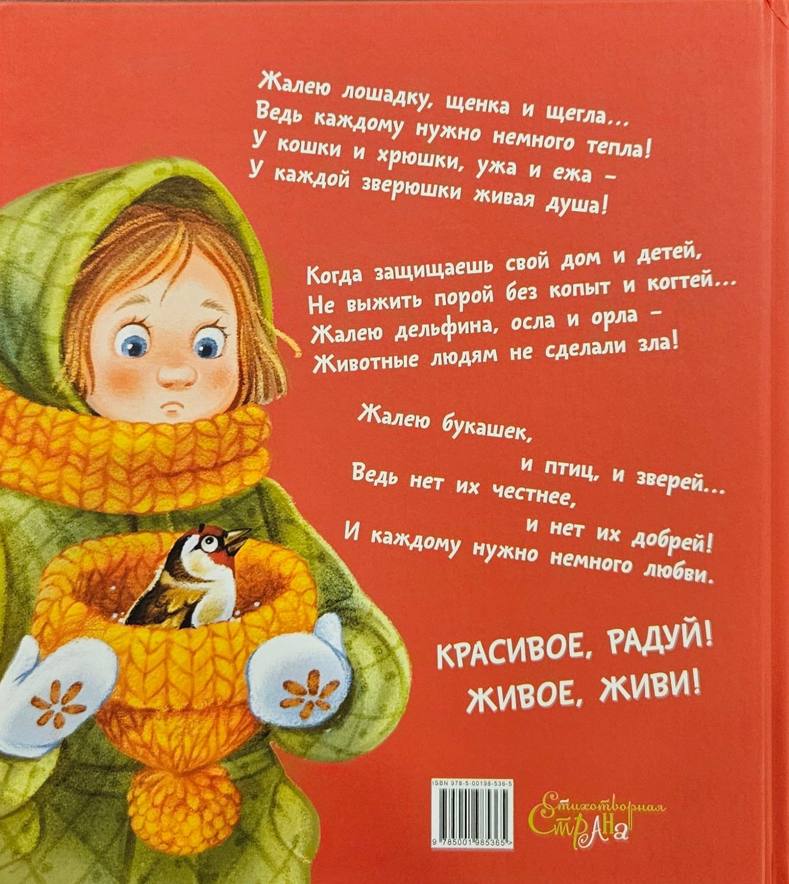 Everyone needs a little warmth! And a tired donkey, and a yard cat, and an old circus horse... This book is about kindness and compassion, about the ability to see and appreciate the main thing, to care and protect, to protect and help. To drink animals on a hot day and feed in the cold, cure a sick paw puppy and save the life of a freezing bird. Kind and soulful poems by Ksenia Valakhanovich will not leave anyone indifferent. And touching illustrations to them were drawn by Ekaterina Varjuntovich.