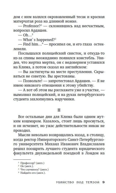 June 1888. Student Klim Ardashev is sent to England on a two-week scientific assignment. While still on the ship, he meets an English scientist. Having arranged to meet him in London, Klim finds him mortally wounded in a tunnel under the Thames. The dying professor asks the Russian student to find the killer. Fulfilling the deceased's last wishes, Ardashev becomes involved in a dangerous investigation and even ends up in prison, but ultimately outstrips Scotland Yard in capturing the criminal.
