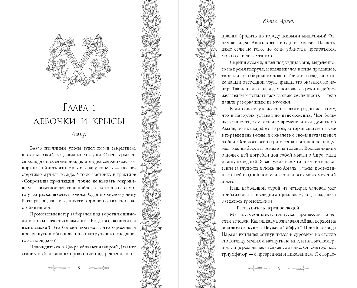 The action of the novel takes place in the author's unique world, inspired by the aesthetics of the Russian Empire of the conventional XVIII-XIX centuries, the Caucasus and the Crimean Khanate. The Beloyarsk Empire consists of 25 provinces and occupies the entire continent. In front of us is the province of Naram and its remote city of Varossa, which the inhabitants call the City of Roses.
