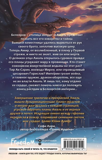 The First Guard is a special detachment of the Emperor, about which there is a terrible rumor. Some of the soldiers betrayed Amir and Ratnar, so they are captured and accused of murder. Amal decides to go to Beloyarov to ask for help from Tyr, the governor of Mirea, who has gone there to appear in court against her brother. The voivode tells her a terrible secret about Tsarevich Gorislav. What will help Amal now? Her own magic or power over the deadly dragon that her cruel father longs to tame?