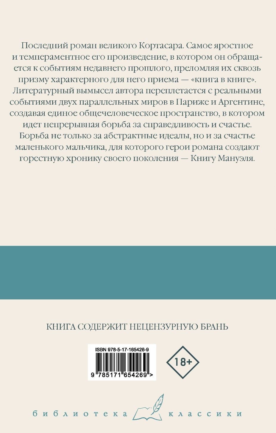 The last novel of the great Cortázar. His most fierce and temperamental work, in which he addresses the events of the recent past, refracting them through the prism of his characteristic technique - "book within a book". The author's literary fiction is intertwined with real events of two parallel worlds in Paris and Argentina, creating a single universal space in which there is a continuous struggle for justice and happiness. The struggle is not only for abstract ideals, but also for the happiness of a little boy, for whom the heroes of the novel create a sorrowful chronicle of their generation - the Book of Manuel.
