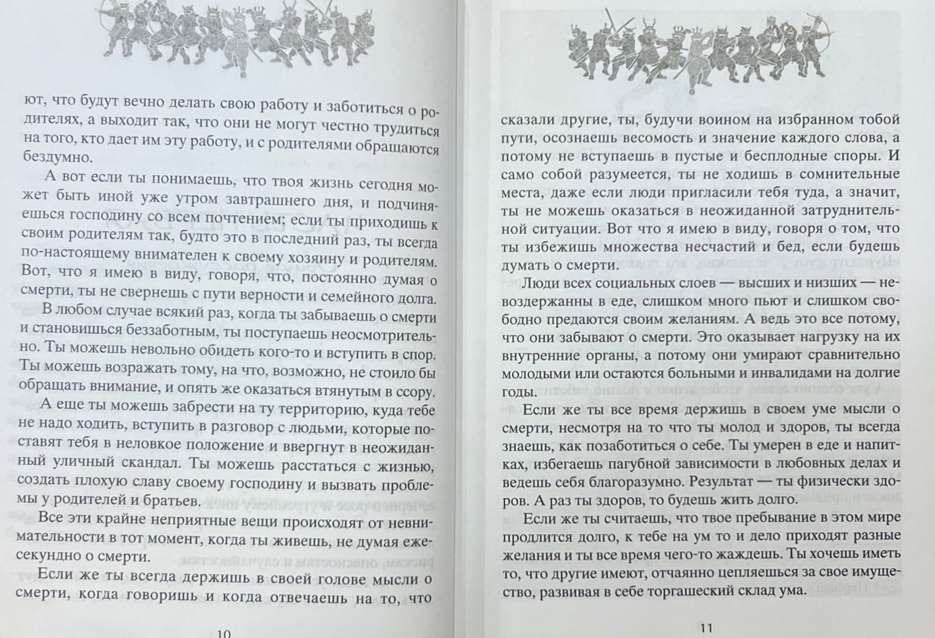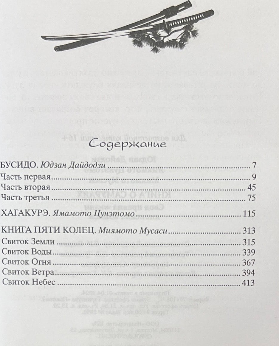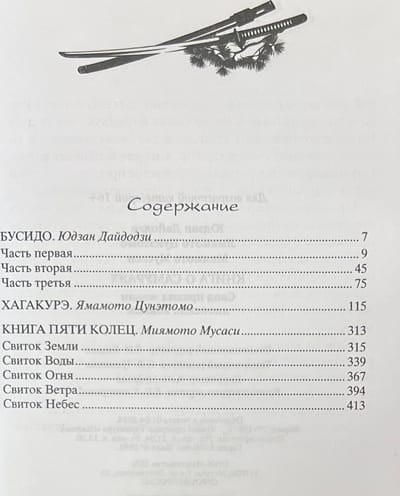 "Bushido" by Yuzan Daidoji is a code of honor that defines the rules of conduct of samurai - professional warriors who defined the history of their country for centuries. It instructed samurai to be honorable and courageous, requiring them to be ready to die at any moment if necessary. "Hagakure" is an authoritative treatise by Yamamoto Tsunetomo, a great samurai who tried to answer in his own way the question, "How do we live? How do we die?" Miyamoto Musashi is a legendary figure - a warrior, a master of the sword, and also a calligrapher who left a written work that occupies an important place in the history of Japanese culture. Throughout his life, he won a great many battles and fought in six wars. His "Book of Five Rings" is a compendium on the art of the sword and a treatise on strategy.