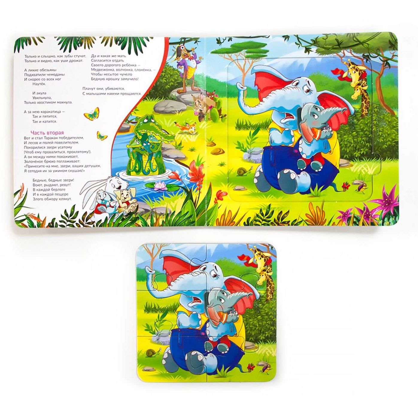 With this series of books, your child will learn poems and nursery rhymes, read instructive stories, learn funny songs, and even assemble a colorful puzzle on each spread. The book contains 5 puzzles, each with 6 large pieces, and bright pictures with clues underneath.