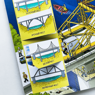 The book with windows "Secrets of Construction" will tell about how to build the structures that people encounter every day. With its help, the child will find out what kinds of construction equipment there are and what they are needed for, what materials and methods are used in construction and who works on creating houses, bridges, subway tunnels and skyscrapers. Detailed colorful illustrations and windows of different shapes will allow the kid to observe all stages of construction work and learn a lot of interesting and useful information.