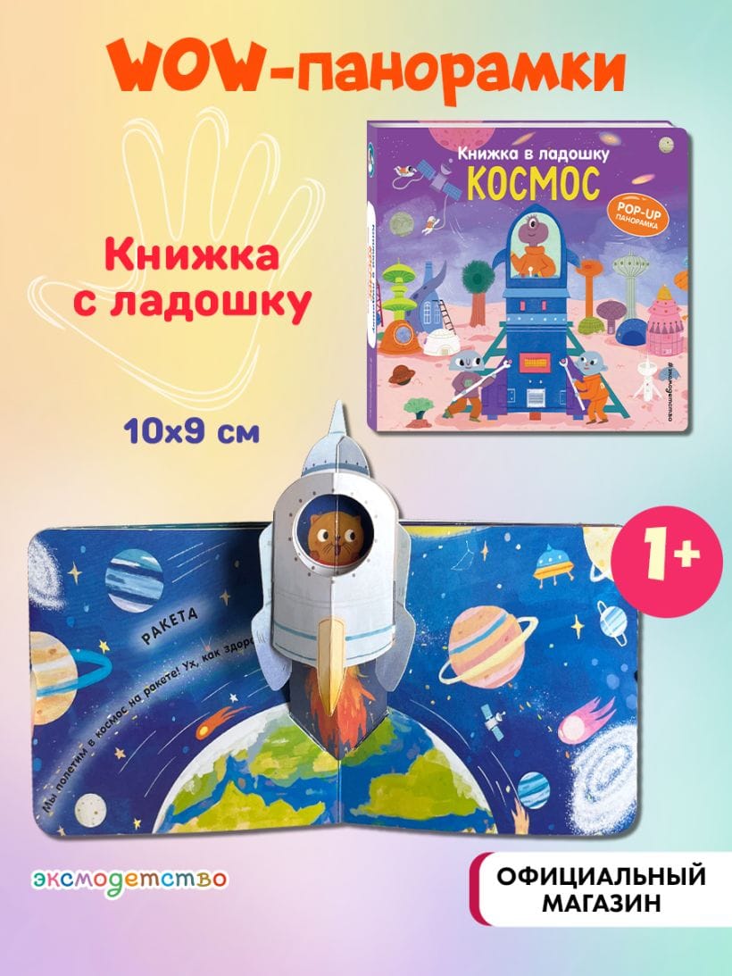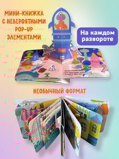 Would you like to fly into space on a real rocket? Meet friendly aliens? Or perhaps walk on the moon? Then get ready for a space journey! Each page of this book features three-dimensional elements and pop-up panoramas. Play with the moving parts and develop fine motor skills! Plus, learn interesting facts about space in this interactive book for little ones.