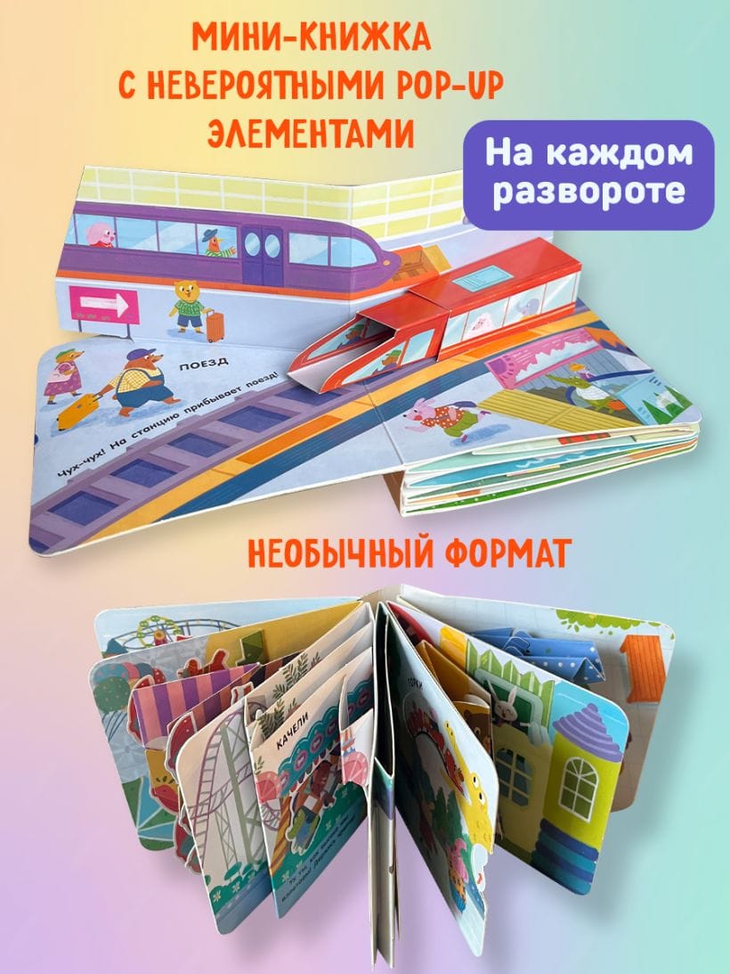 Your little one can expand their knowledge of the world around them with other books in the series: "Palm Book. Space. Pop-up Panorama," "Palm Book. Carousels. Pop-up Panorama," and "Palm Book. Cute Animals." Pop-up panorama", "Palm book. Funny animals. Pop-up panorama".
