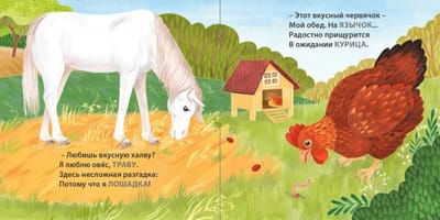 Book-cardboard “Who eats what” in the poems of Evgeny Sosnovsky will introduce your baby to various animals and what they eat. The poems are written so that the child can rhyme the name of the animal or other words.