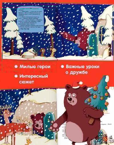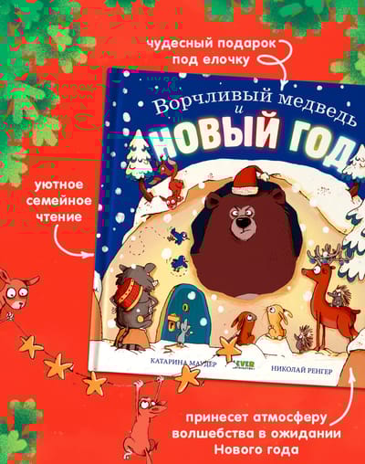 The pages of this book for little ones, Clever Books, offer themes of friendship, mutual support, and respect for one another, perfect for discussing with your little ones. This incredibly funny children's book with large, beautiful illustrations will instill a festive spirit and a belief in miracles! The translation of "Grumpy Bear and the New Year" for children was done by the talented author Elena Feldman.