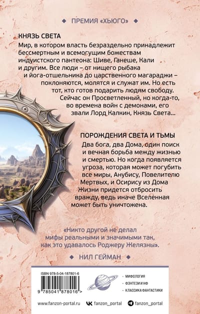 "Prince of Light." Perhaps it happened after the demise of the Earth. On a distant planet-colony in power was a group of people who, using the achievements of science, achieved immortality and began to rule their world under the guise of the gods of the Hindu pantheon. And only one man dares to oppose them - the one who was once the Prince of Light. "The Spawn of Light and Darkness." The distant future or the distant past. The gods of ancient Egypt rule the cosmos mastered by mankind. Anubis, Lord of the Dead, and Osiris of the House of Life forget their eternal feud when a threat appears not only to worlds, but to their own existence.