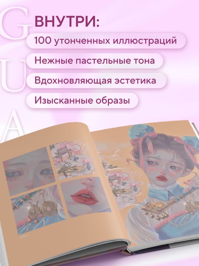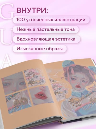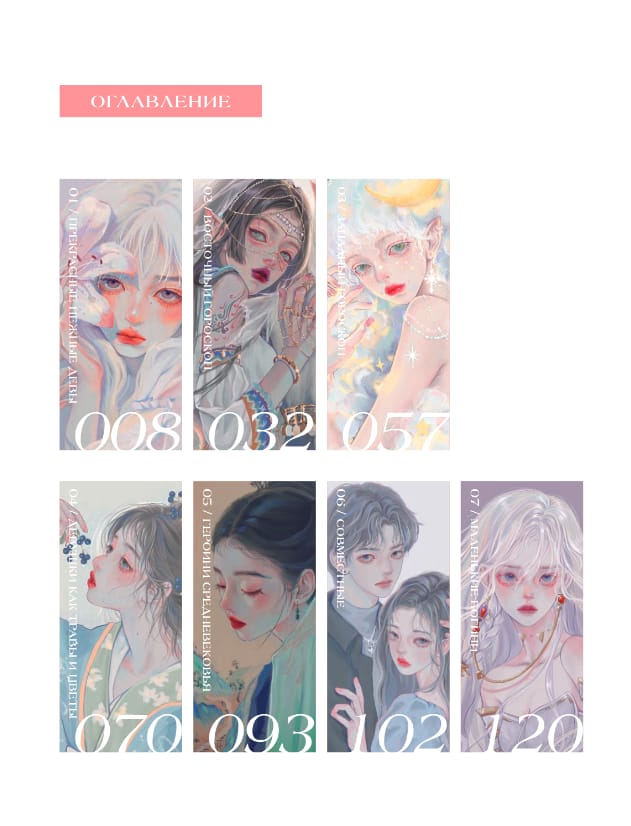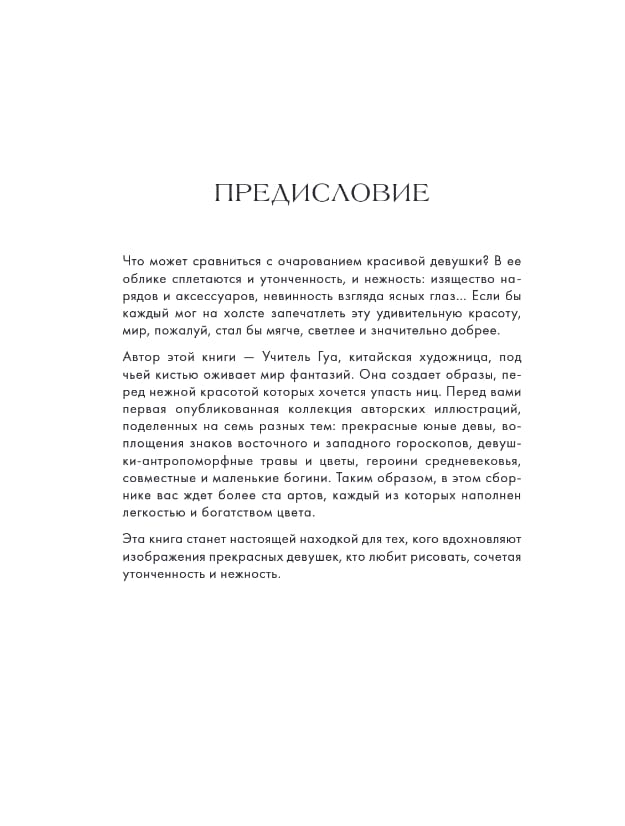 Inside, the reader will find over 100 illustrations of charming heroines who embody beauty in all its manifestations. Each section is a separate universe: from zodiac signs and floral images to antique elegance and modern sophistication. The illustrations are done in soft pastel colors, filled with light, airiness and attention to detail.